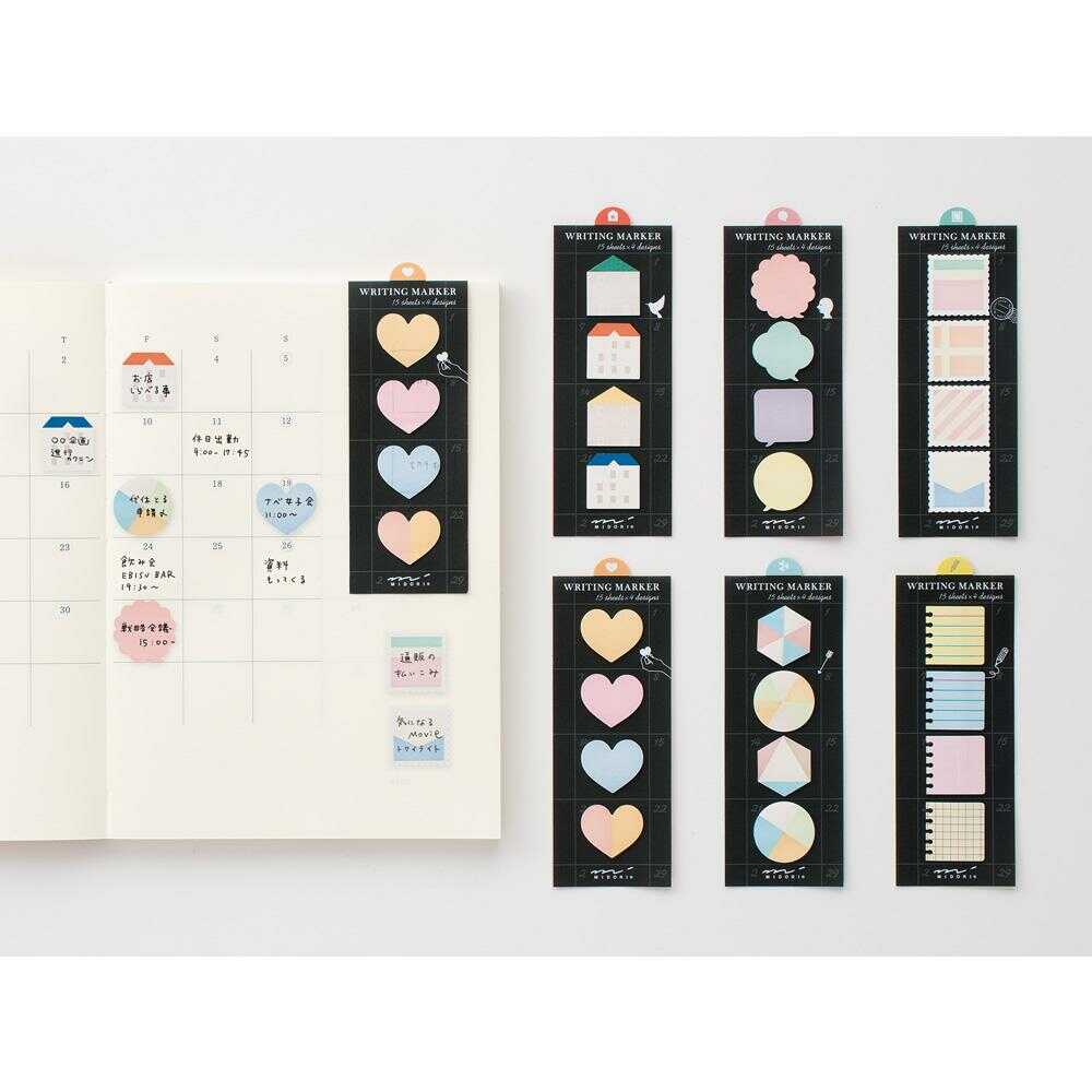 手帳のマス目に丁度いいサイズ。 貼ってはがせるメモなので、仮の予定などを書き込むのに便利です。 手帳の開きたいページに台紙を挟んでおくと、しおりにもなり、必要な時すぐに付せんを使えます。