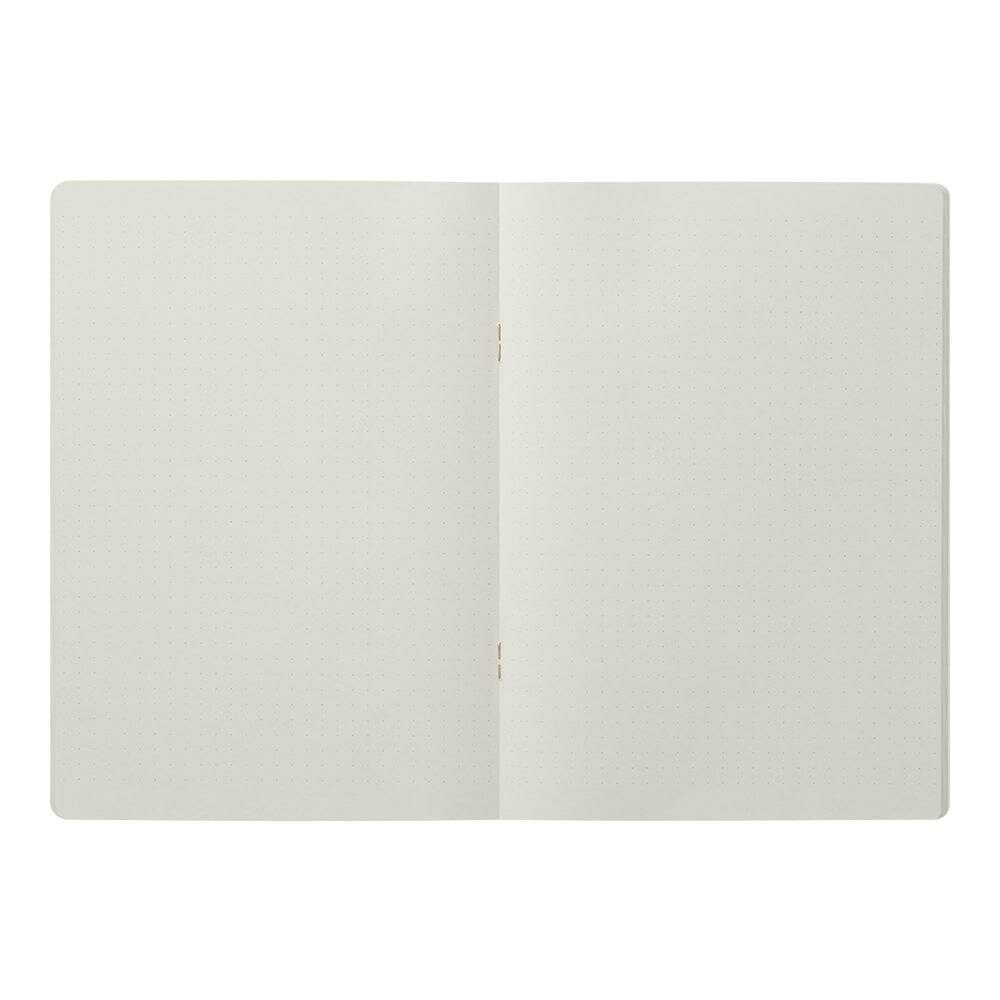 色を楽しむ、ステッチャー綴じのカジュアルなノート。 中紙には表紙に合わせた色付きの紙を使用しており、お好きな紙とペンの組み合わせを楽しめます。 罫線は人気のドット方眼を採用。書き込む際のさりげないガイドにもなり、シールや写真が貼りやすくなっています。 5mmドット方眼、56ページ。
