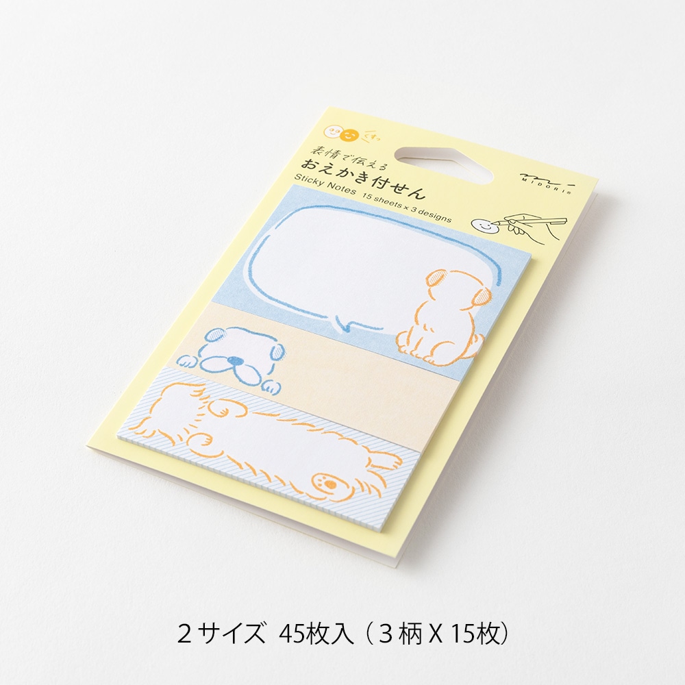 気持ちやシーンに合わせて、動物の顔を自由に描いて楽しめる付せんです。 ベースとなる動物の絵柄の中に、笑顔や泣き顔など、お好きな表情を描き込み、メッセージを添えれば、簡単に自分らしいアレンジが完成します。お絵描き感覚で楽しみながらお使いいただけます。暮らしの中でのちょっとしたコミュニケーションにぴったりです。 首をかしげたり、ひょっこり覗いたりしているさまざまなポーズが楽しめるデザインです。