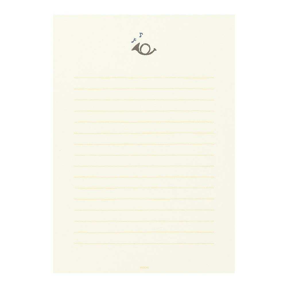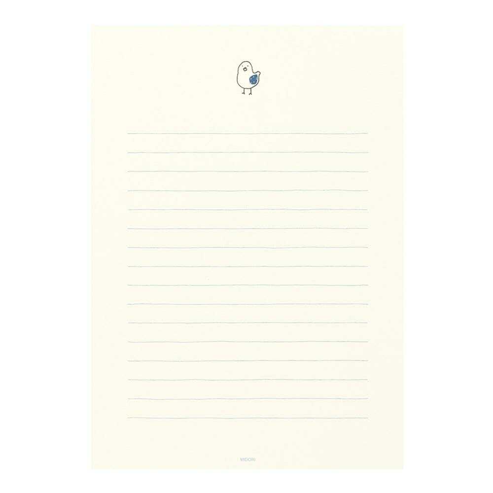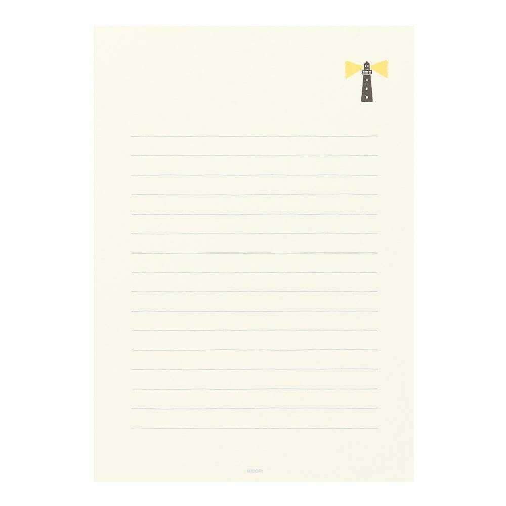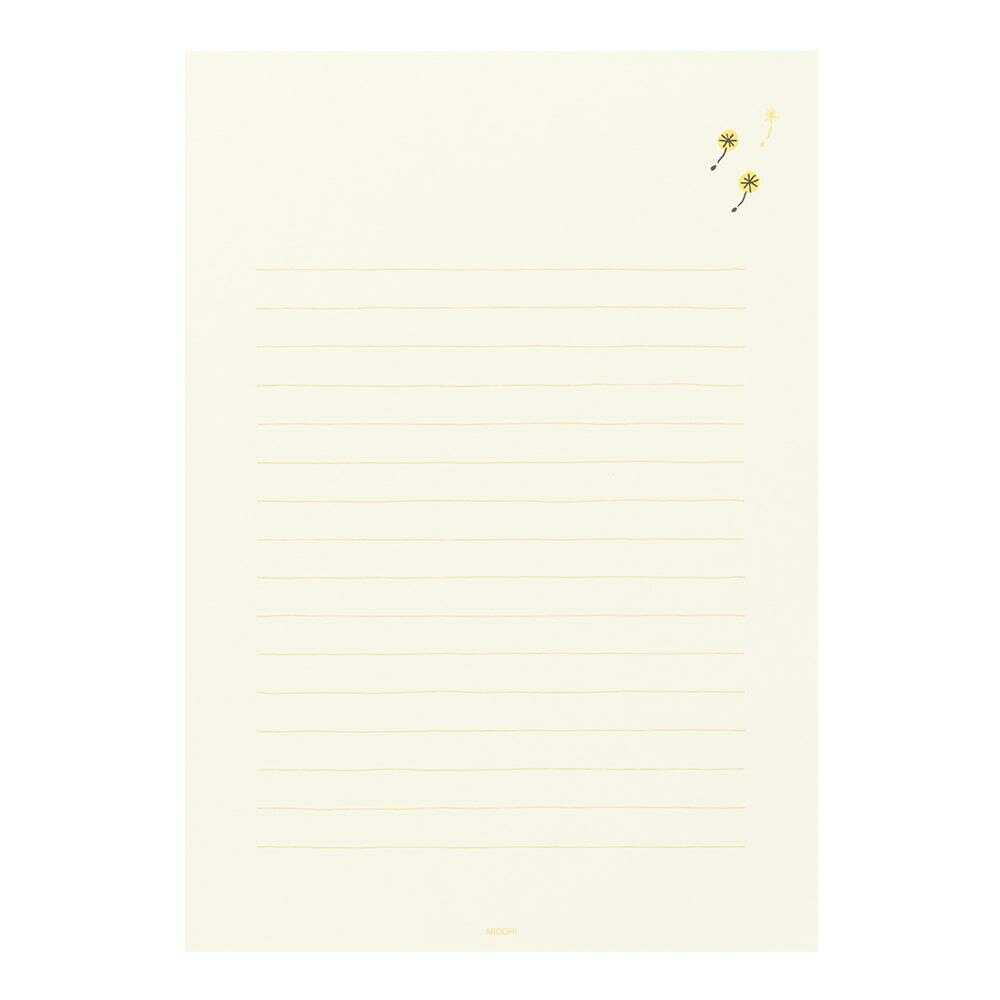 青い鳥、灯台、ラッパ、たんぽぽの4つのラッキーモチーフをあしらった、本のように開いて書ける便箋です。 表紙を開いた左ページには、季節のあいさつやおまじないの言葉など、手紙を書く時に参考になるテキストがついています。