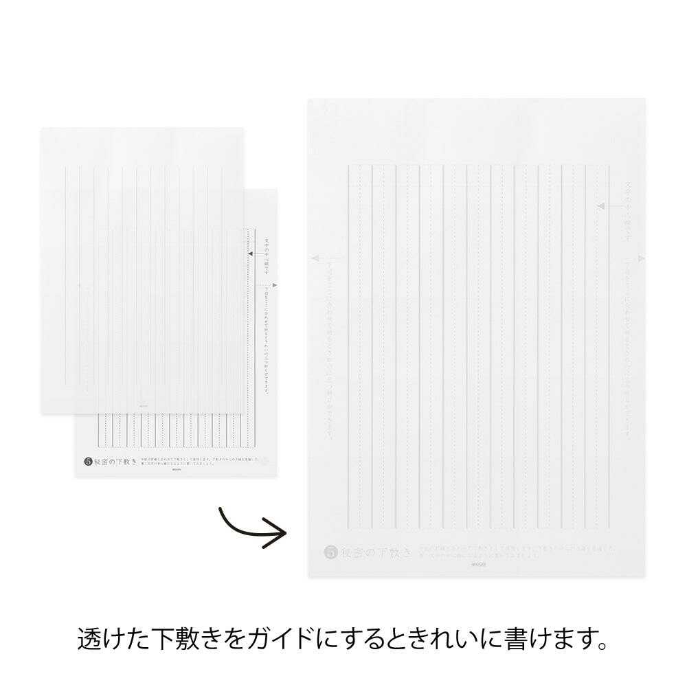 ビジネスからプライベートまでお使いいただける「お礼状」のための便箋。 付属している「秘密の下敷き」を使って、だれでも簡単にきれいな手紙を書くことができる便箋B5サイズです。 お礼状の基本、お礼の文例や文字のお手本も付いており、ヒントが満載です。