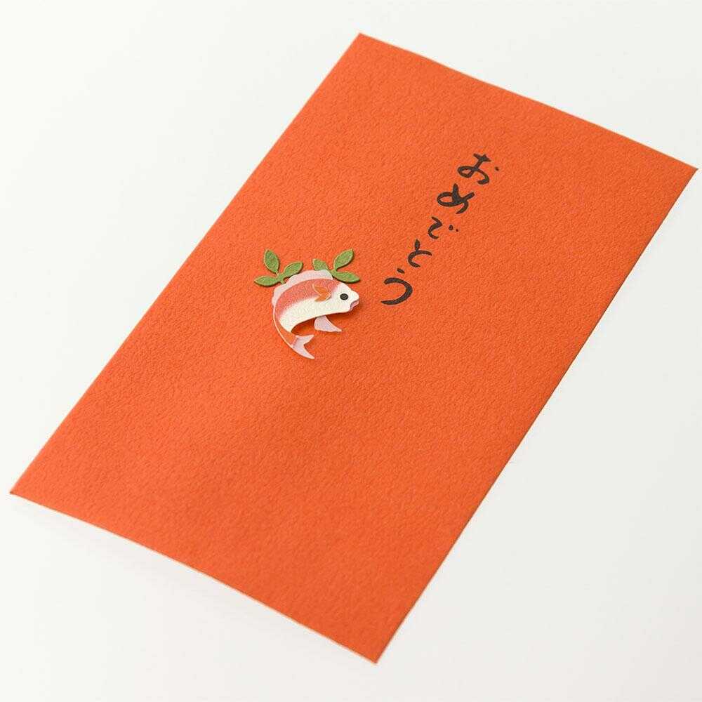 立体感のあるペーパークラフトのモチーフをあしらったぽち袋。 おめで「たい」日の縁起物、鯛柄でどなたにも使いやすいデザインに仕上げています。