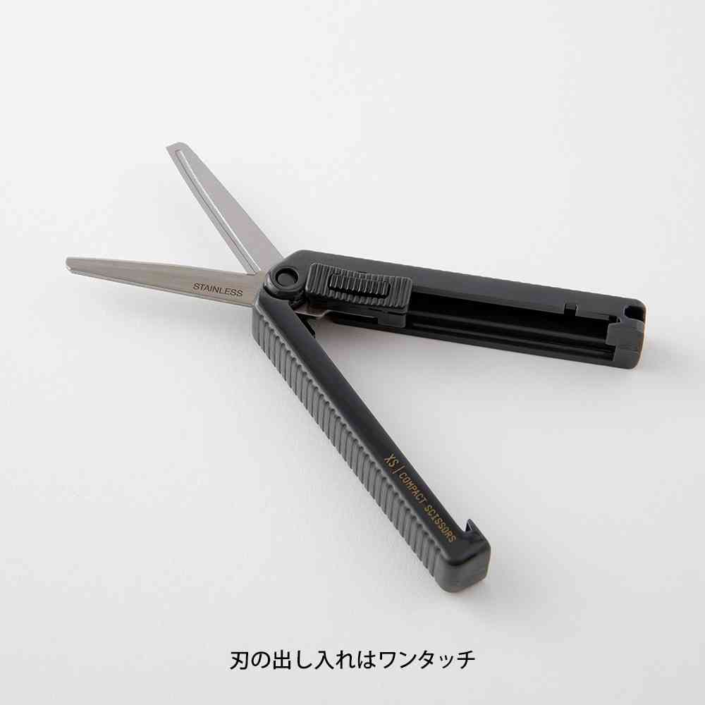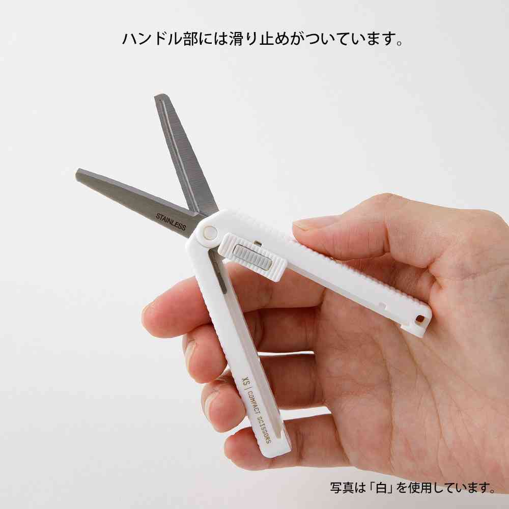 サイズ表記に用いられるExtra Small(エクストラ スモール)=「XS」をシリーズ名の由来とする、機能性と携帯性を追求したとっても小さい文房具シリーズのハサミです。 のりが付着しにくく、厚めの紙もしっかり切れる刃を採用。 スライドして刃を収納すれば全長わずか76mmに。 安心してポケットに入れて携帯できます。