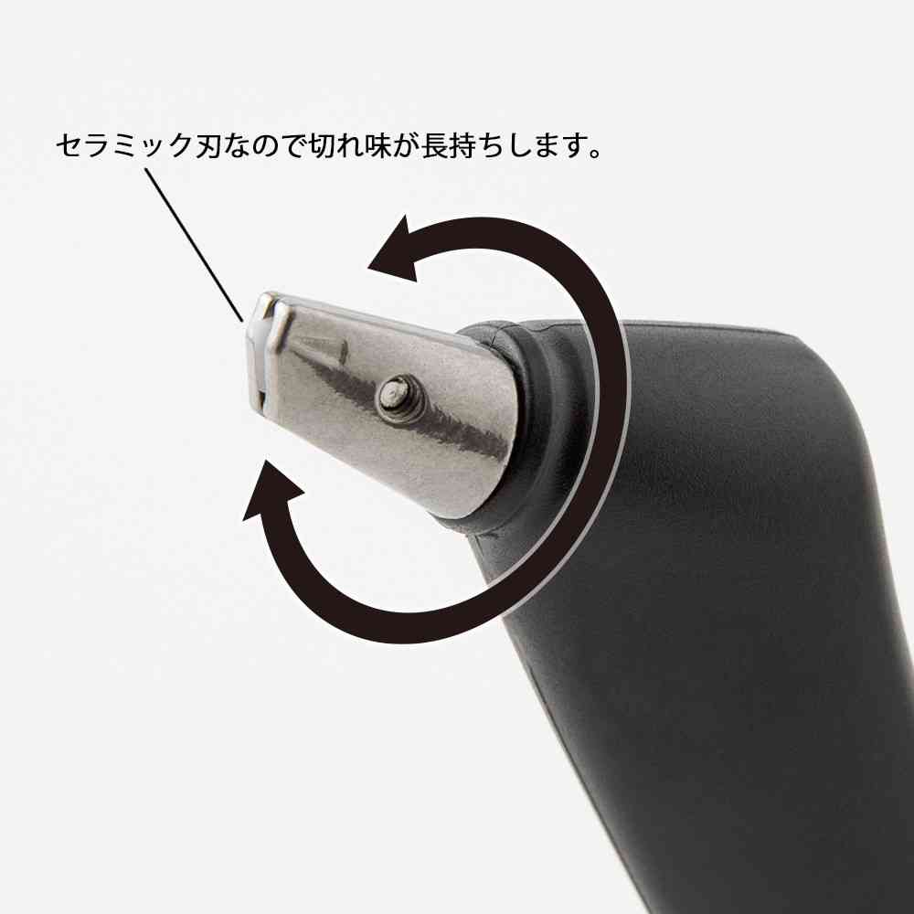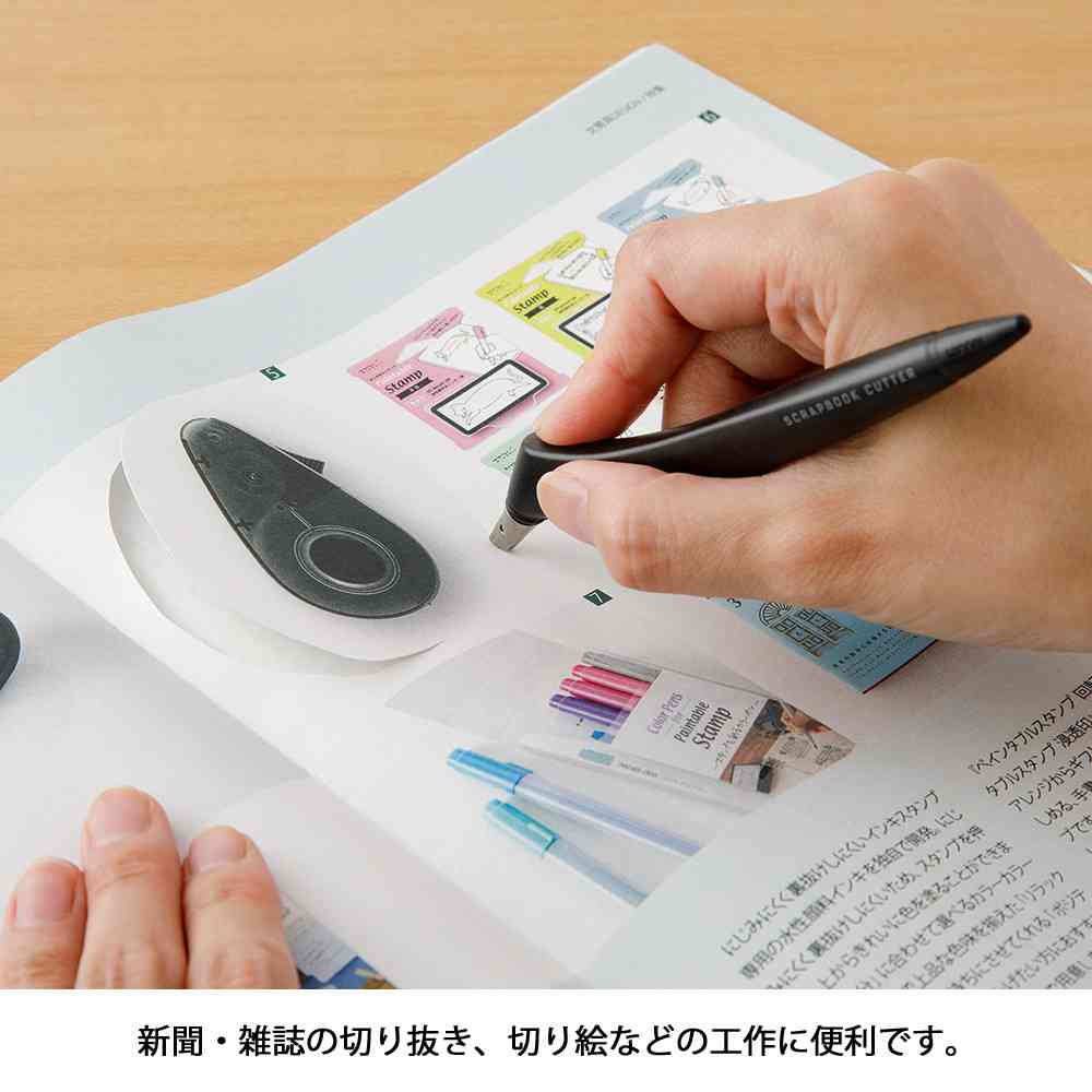 新聞や雑誌などのスクラップやペーパークラフトに便利な、一枚目の紙だけを切り抜くことができるカッターです。 回転するヘッドにより、直線だけでなく曲線の切り抜きにも適した設計になっています。