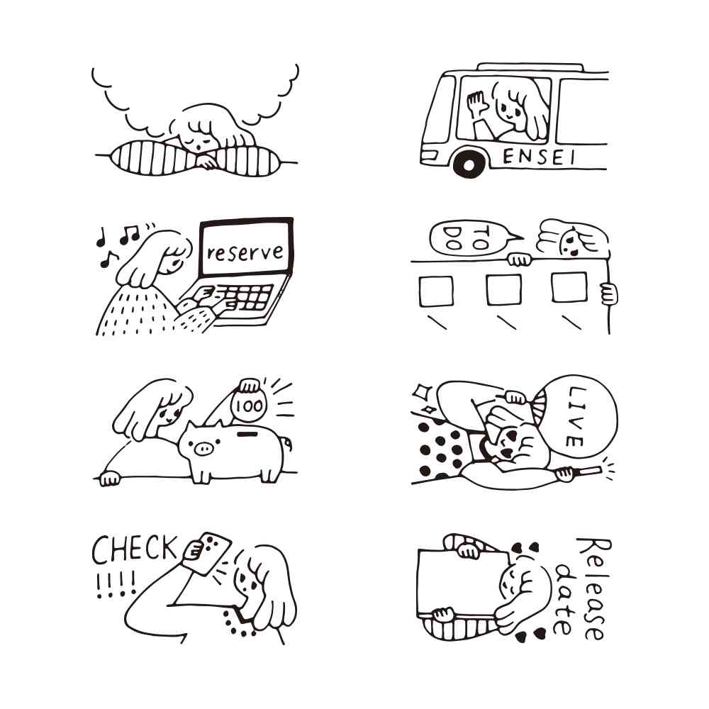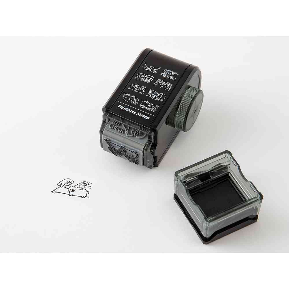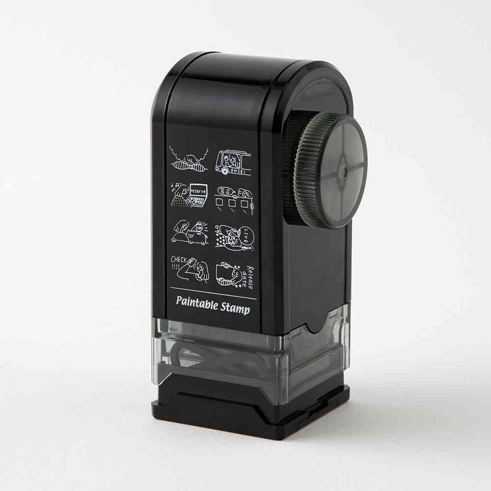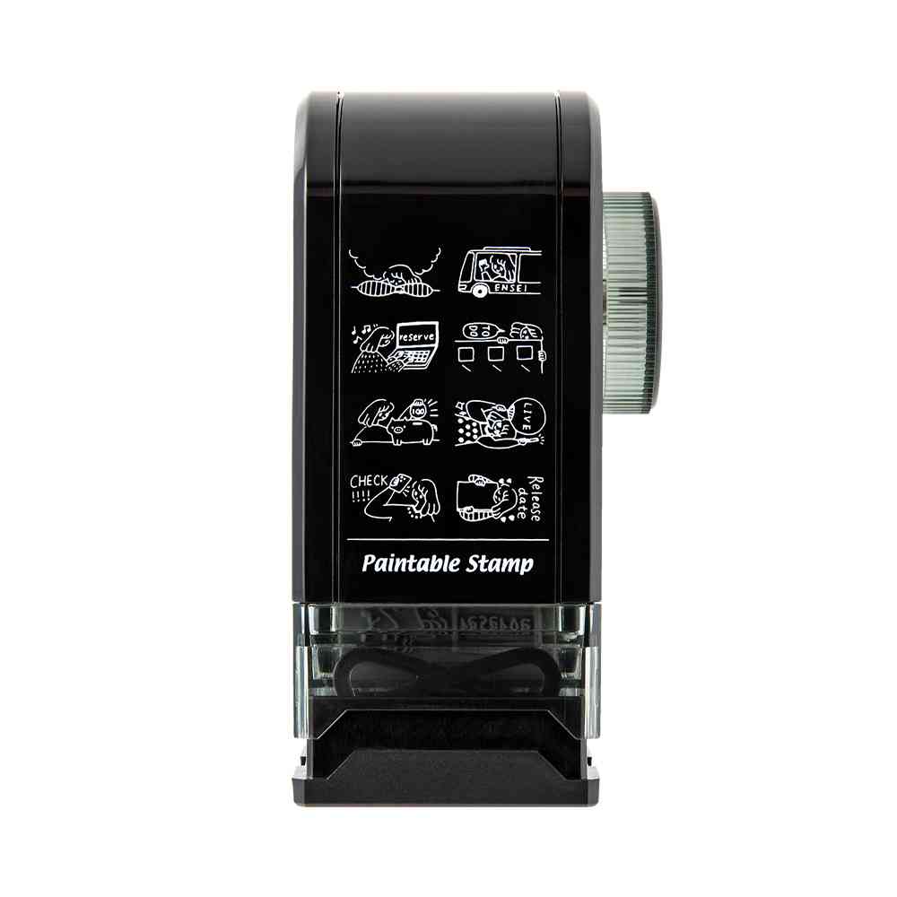 ノートやダイアリーの記録を楽しむためのスタンプです。インキパッド付きなのでスタンプ台は不要。 これ1台で8つの繊細な柄をきれいにスタンプすることができます。 柄の切り替えは、手が汚れる心配がないダイヤル式。 インキは油性顔料なので、押した絵柄の上から水性マーカーで色を塗ってもにじみません。 約1,000回押すことができますが、薄くなったら別売りの「補充インキ」で補充してください。 トレンドの「推し活」をテーマに、その一連の行動シーンを柄におこしました。