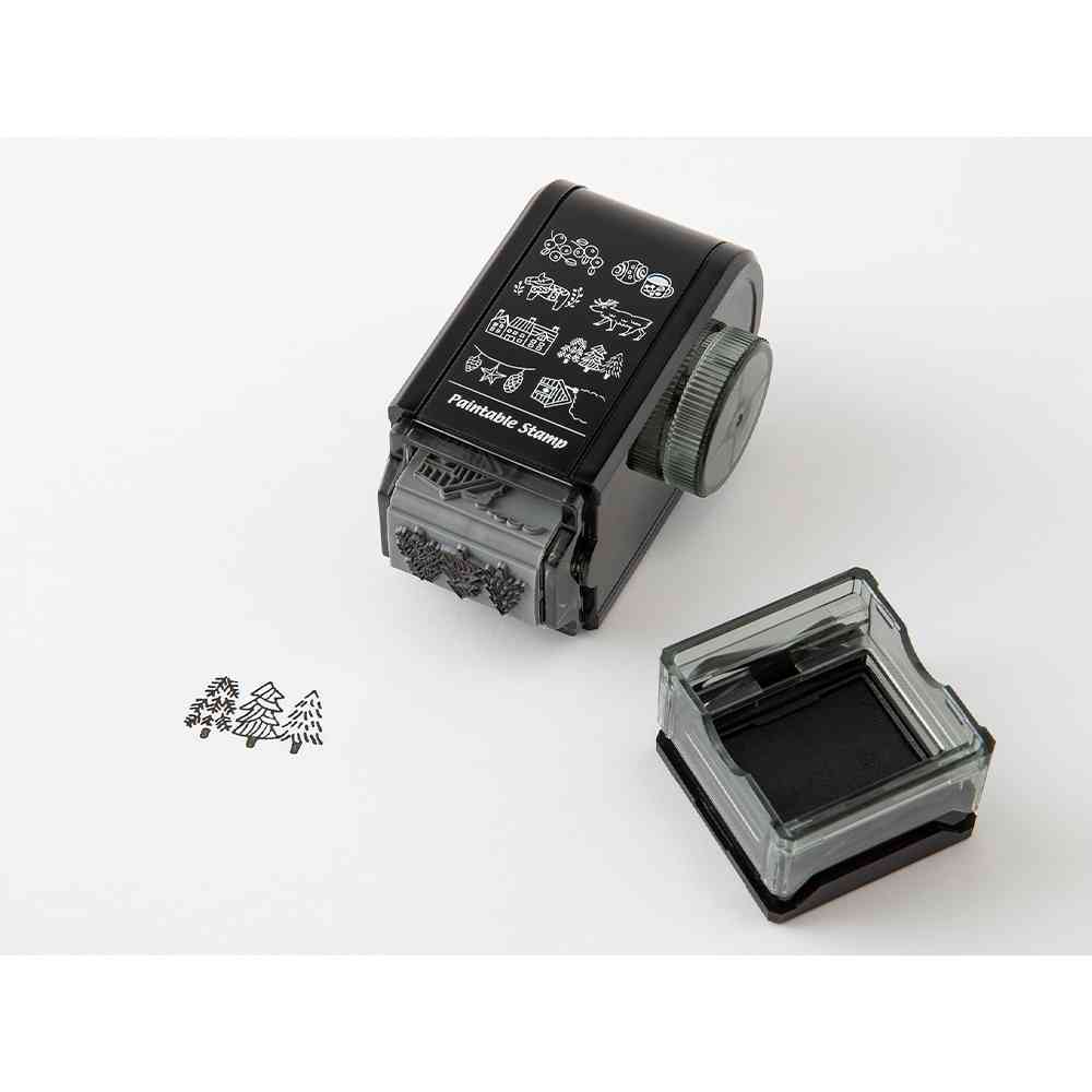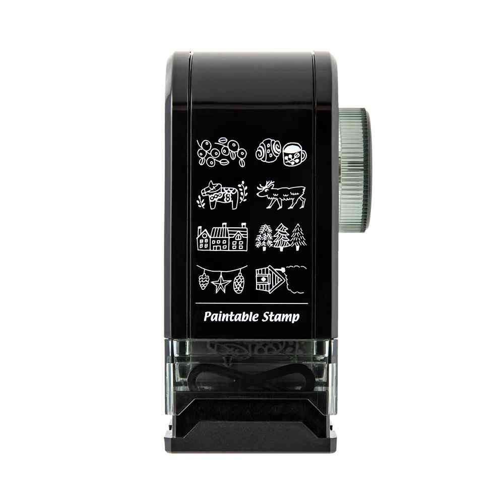 ノートやダイアリーの記録を楽しむためのスタンプです。インキパッド付きなのでスタンプ台は不要。 これ1台で8つの繊細な柄をきれいにスタンプすることができます。 柄の切り替えは、手が汚れる心配がないダイヤル式。 インキは油性顔料なので、押した絵柄の上から水性マーカーで色を塗ってもにじみません。 約1,000回押すことができますが、薄くなったら別売りの「補充インキ」で補充してください。 北欧らしい穏やかで自然を感じさせるモチーフは、組み合わせて押すことでストーリーが感じられるようなデザインです。