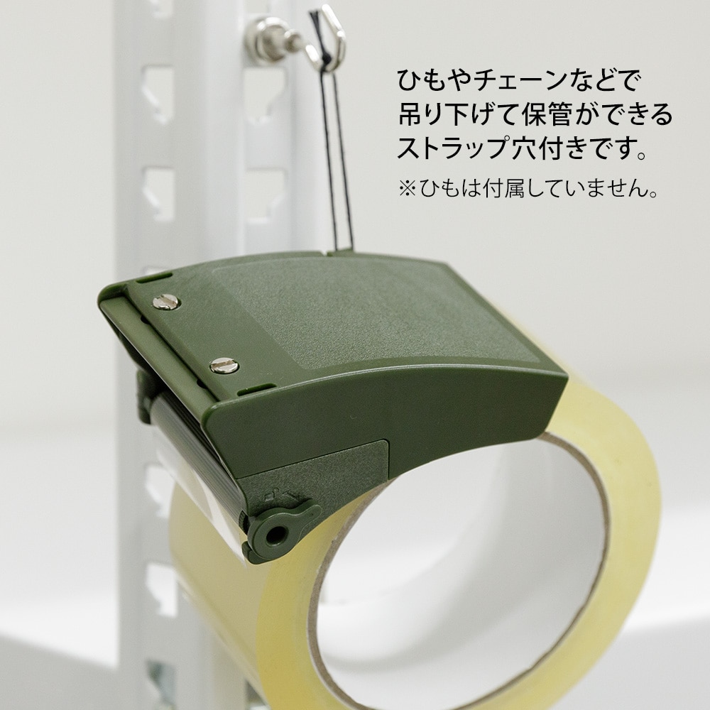 軽い力でテープの切り口がきれいにカットできるテープカッターです。 貼り戻り防止用のローラーがついているため、使い終わりのテープが巻芯側に戻ることなく、毎回の使用時にテープの端がすぐに見つかります。そのため、テープの先端がつかみやすく、ストレスなく連続で使用できます。 また、ローラーが開閉するためテープの付け替え作業も簡単。刃が露出しないアームカバー付きの安全設計です。 刃は、特殊加工でシャープな切れ味。刃を入れ替えて使える両刃仕様で2倍使えます。ストラップ穴付きで紐やチェーンなどで吊り下げて収納可能です。 ※テープ幅が48mmを超えるテープはご使用いただけません。
