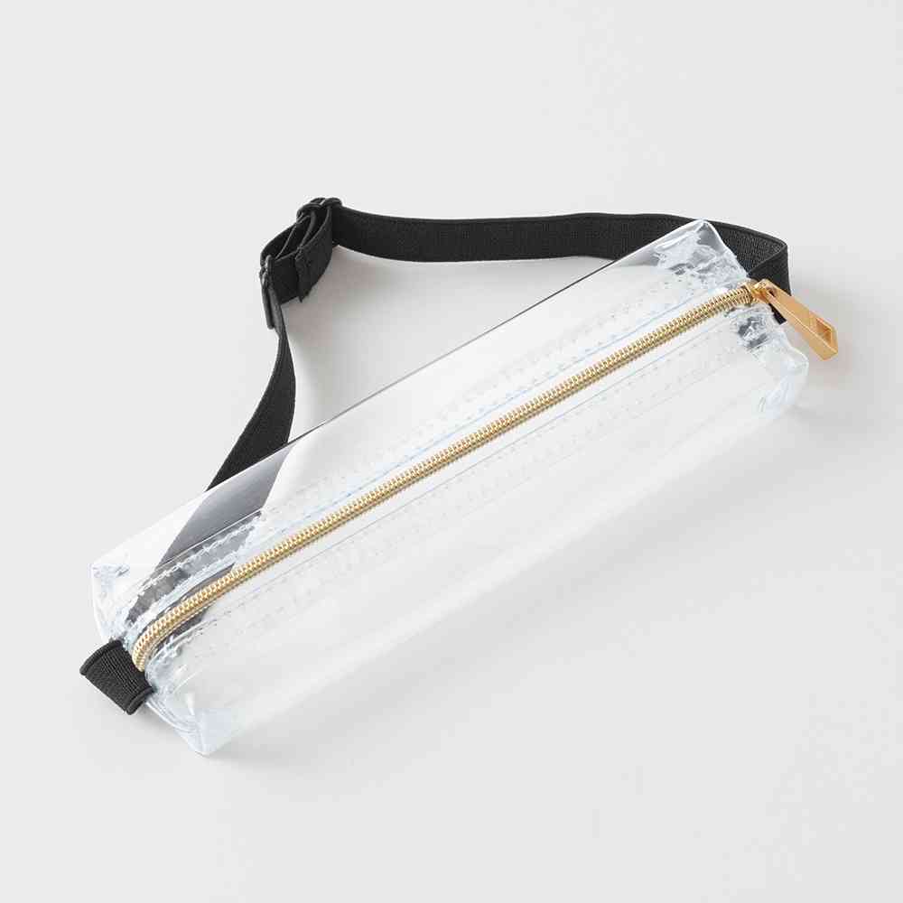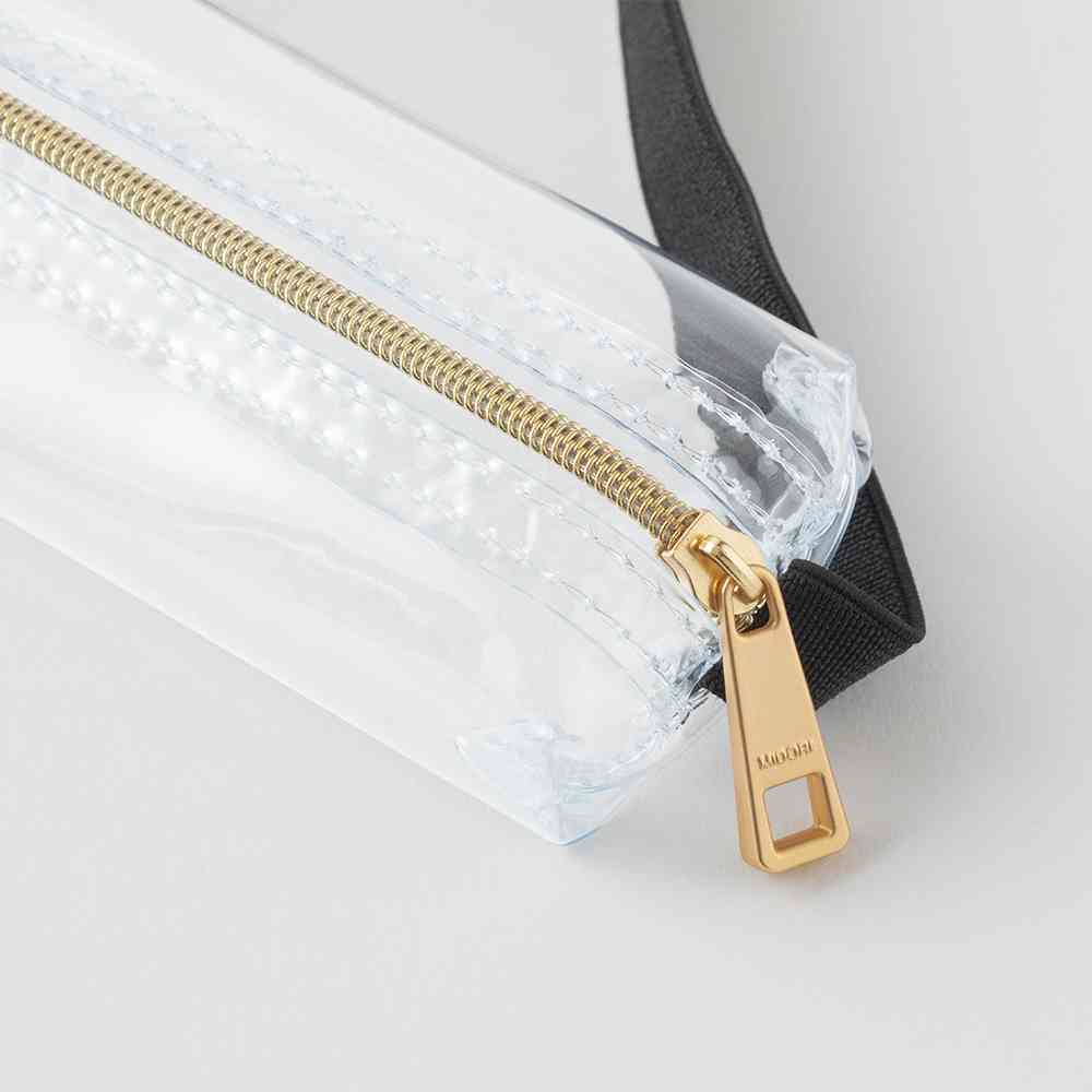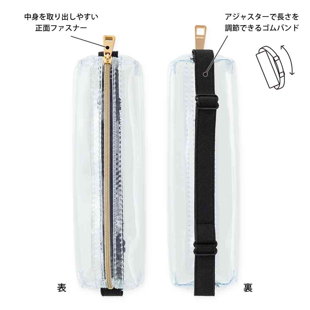 手帳やノートの表紙に取り付けて、ペンや文具をスマートに持ち運ぶブックバンドペンケースです。 長さ調節できるアジャスター付きゴムバンドなのでB6~A5サイズの手帳やノートに対応できます。 ペンなら7本まですっきりしまうことができ、透明なので中に入っているものが見やすく目的の文具がサッと取り出せます。