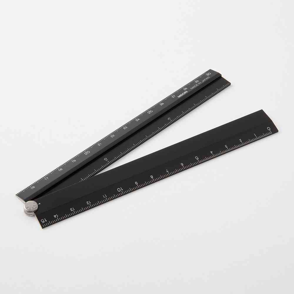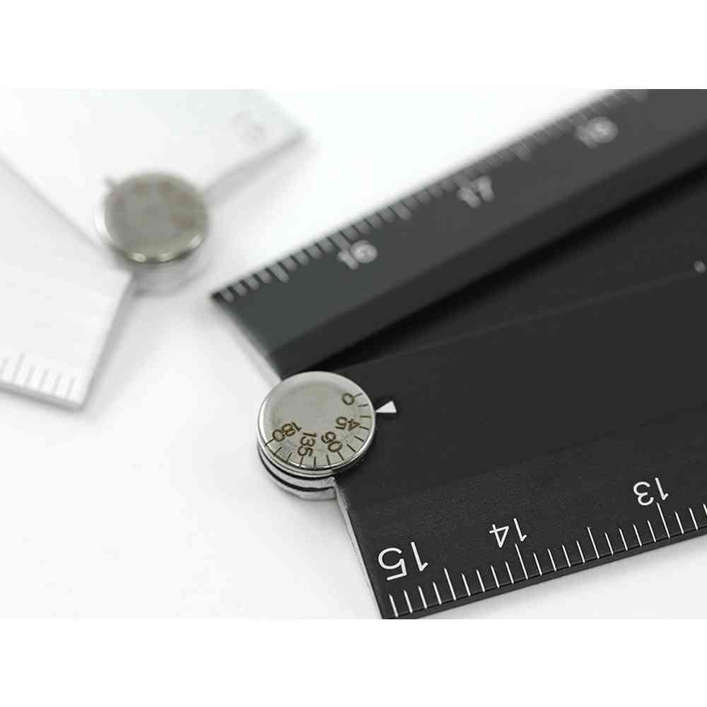 使用時には30cm、使わない時には二つ折りにたたんで、胸ポケットやペンケースに収納が可能なロングセラー「マルチ定規」の軽くて丈夫なアルミ素材タイプ。 カッターを使った作業にもおすすめです。 中心軸には角度表示があり、15度ごとの角度測定機能もついています。 シンプルで使いやすさにこだわった日本製の定規です。