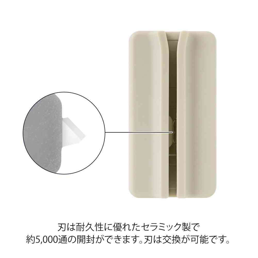 背面に強力マグネットが内蔵されているため、金属面に固定させたままでも使用することができるレターカッターです。 開封するには、本体の溝に封筒をはさんでスライドさせるだけ。 従来品では開けにくかった厚みのある封筒や角潰れなどでもストレスなく開封できる進化版です。 刃は耐久性に優れたセラミック製。 約5,000通の開封が可能となっています。