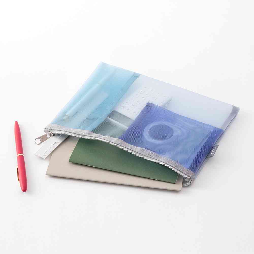 - > ミドリ ペン&ツールポーチ メッシュ 水色 1個