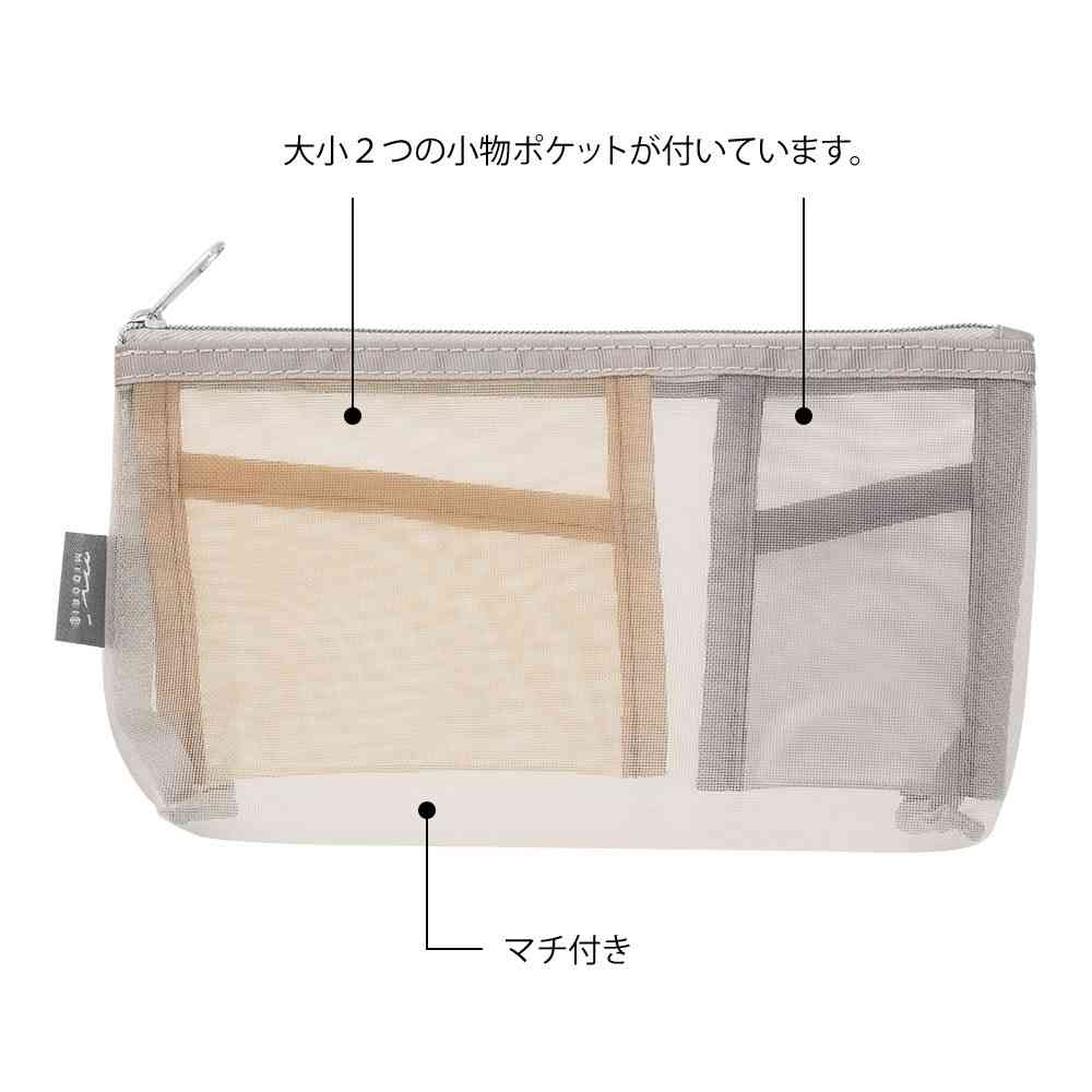- > ミドリ ペン&ツールポーチ メッシュ マチ付 グレー 1個