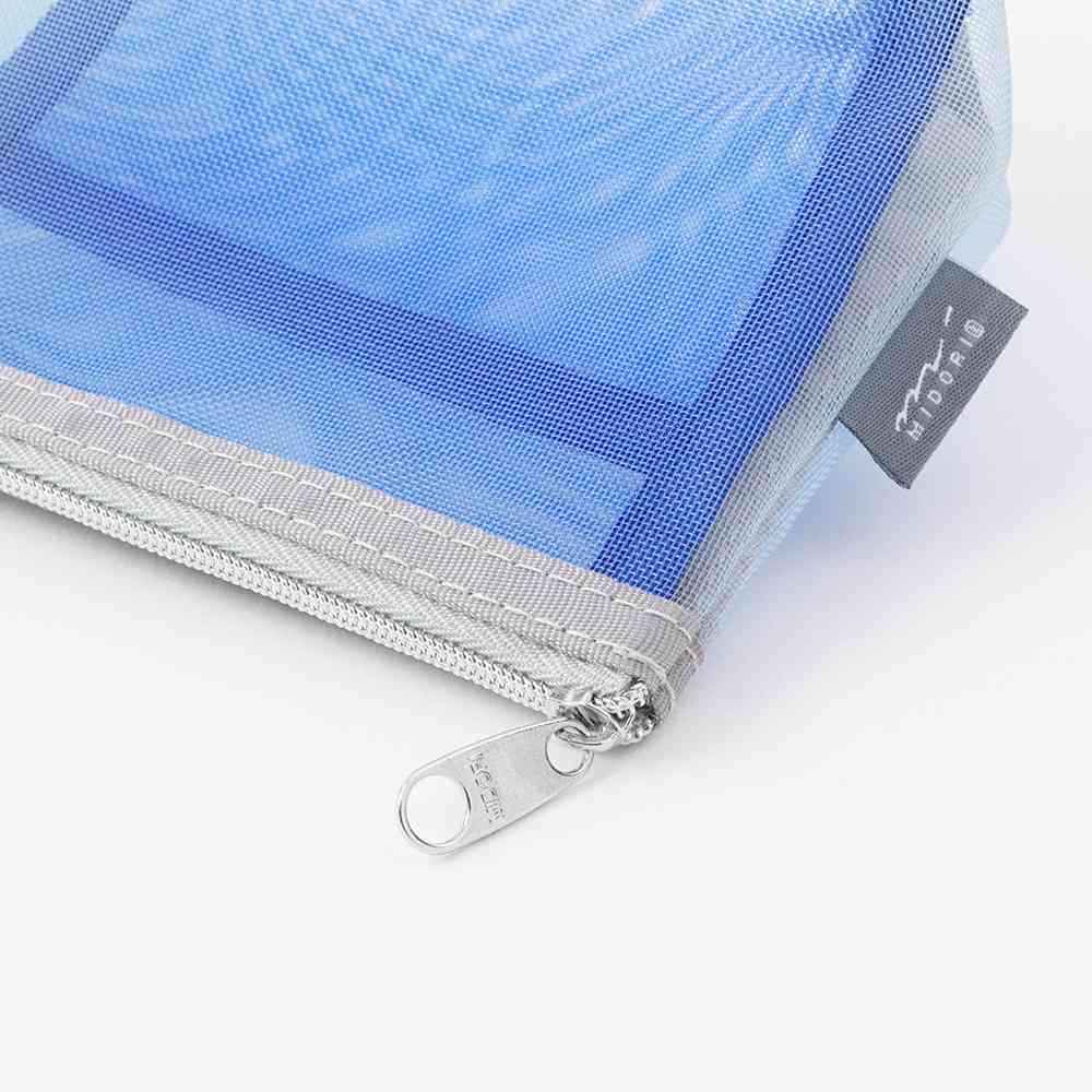 - > ミドリ ペン&ツールポーチ メッシュ マチ付 水色 1個