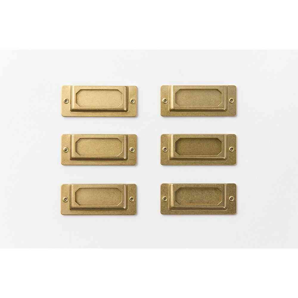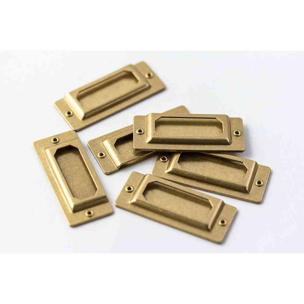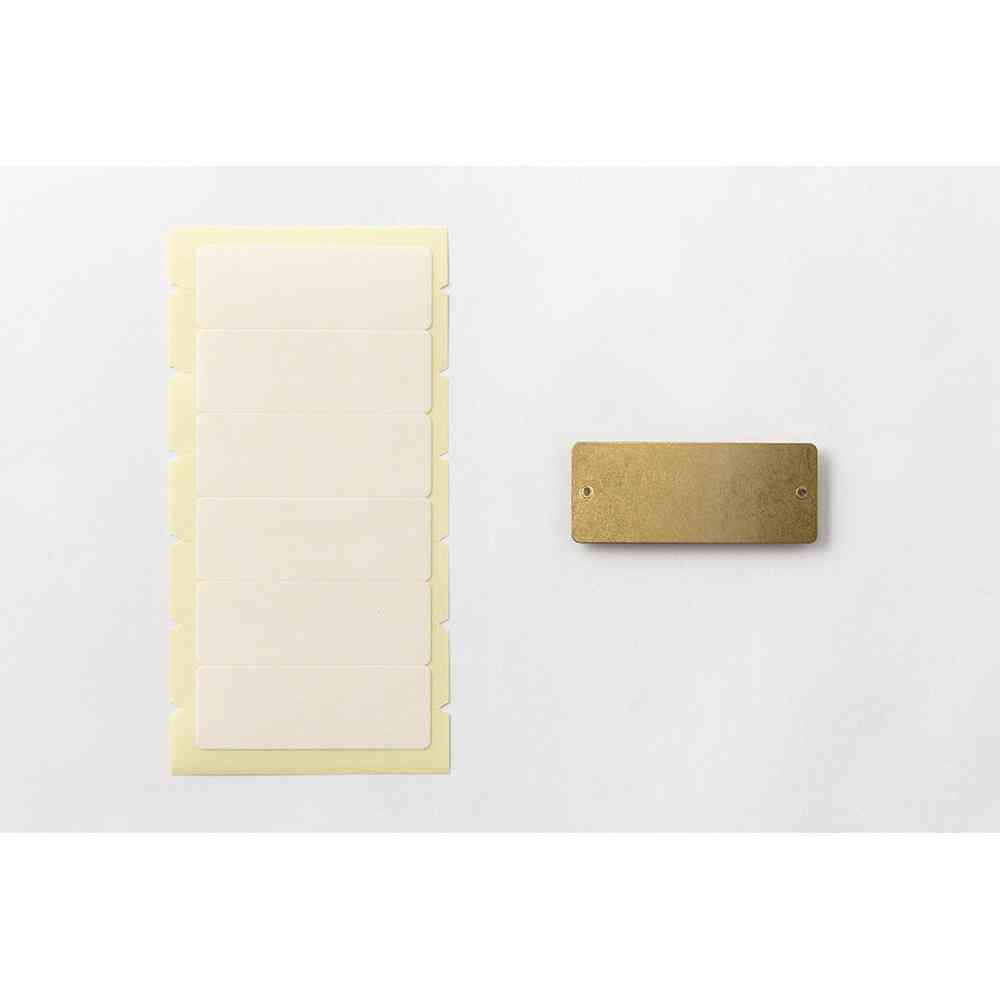 付属の強力両面シールでノートの表紙やボックスに貼ってご使用ください。 ハトメが留めてある穴に糸を通して、革小物やブックカバーに縫い付けても素敵です。