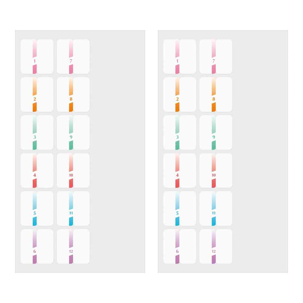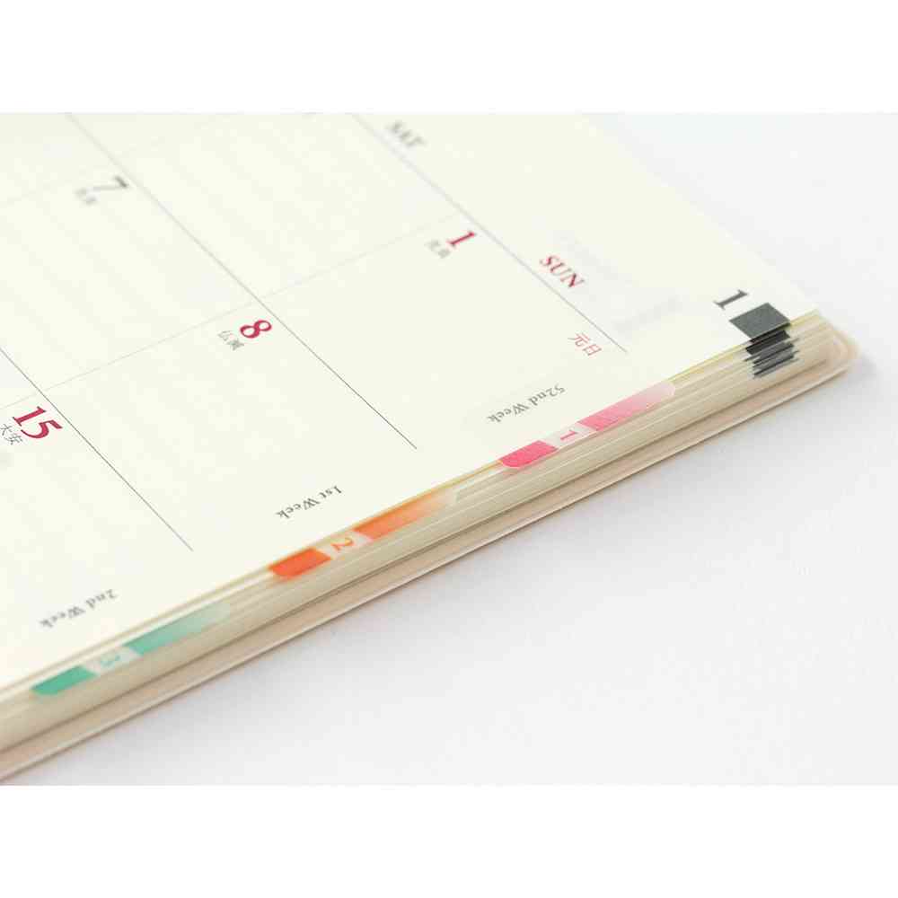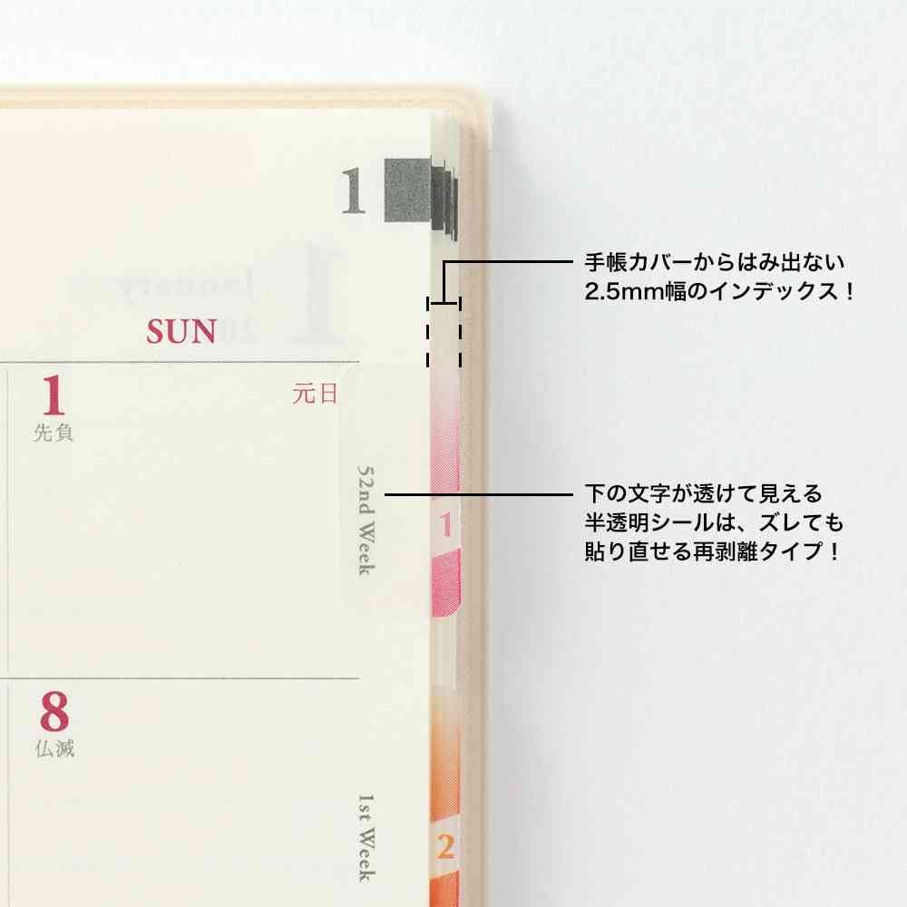 手帳をきれいにまとめるチラッと見えるインデックスラベル。 インデックスが傷まないよう最小限の飛び出しで表示します。