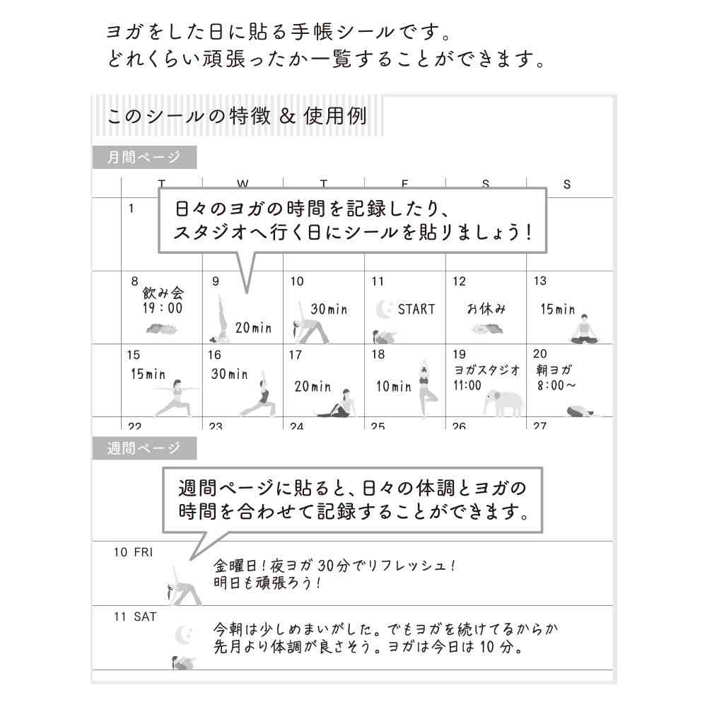 貼ってはがせる達成シール。 ヨガをした日に貼るシールです。 頑張った日が一覧できて達成感を感じられます。 月のシールは体調管理にも使っていただけます。 ミシン目入りで上下に2分割できるので、必要な分だけ携帯できます。