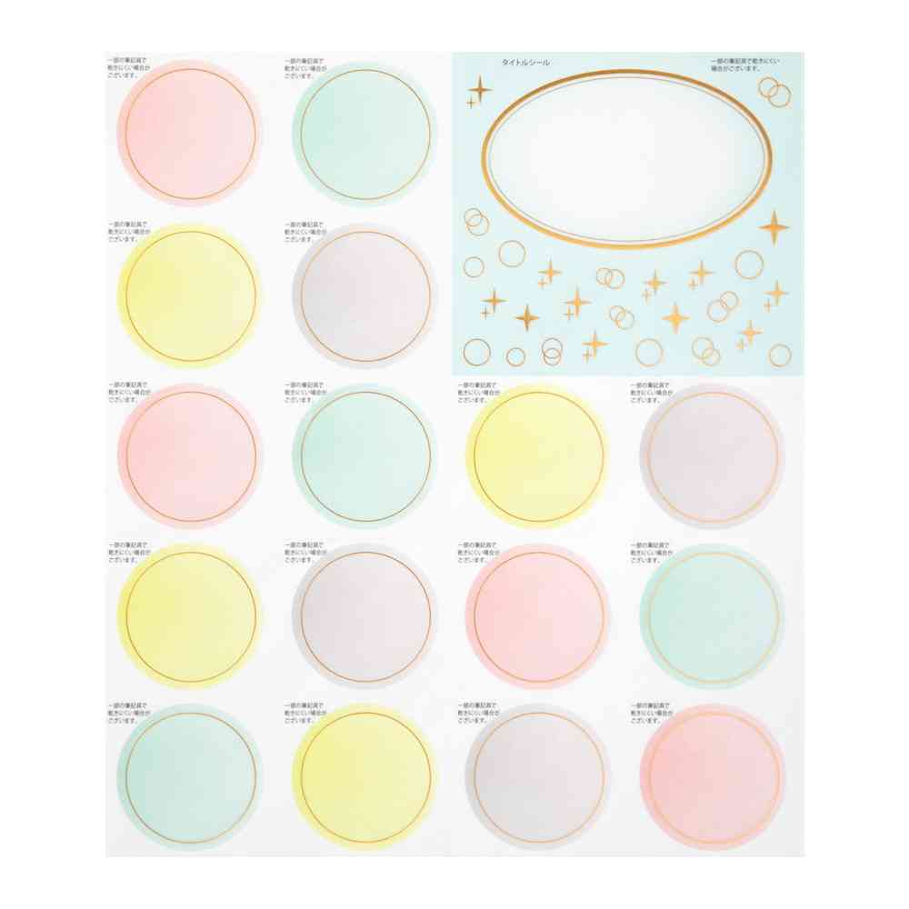 ドット柄の色紙用シールです。 タイトルシール1枚と記入用半透明シール16枚入り。