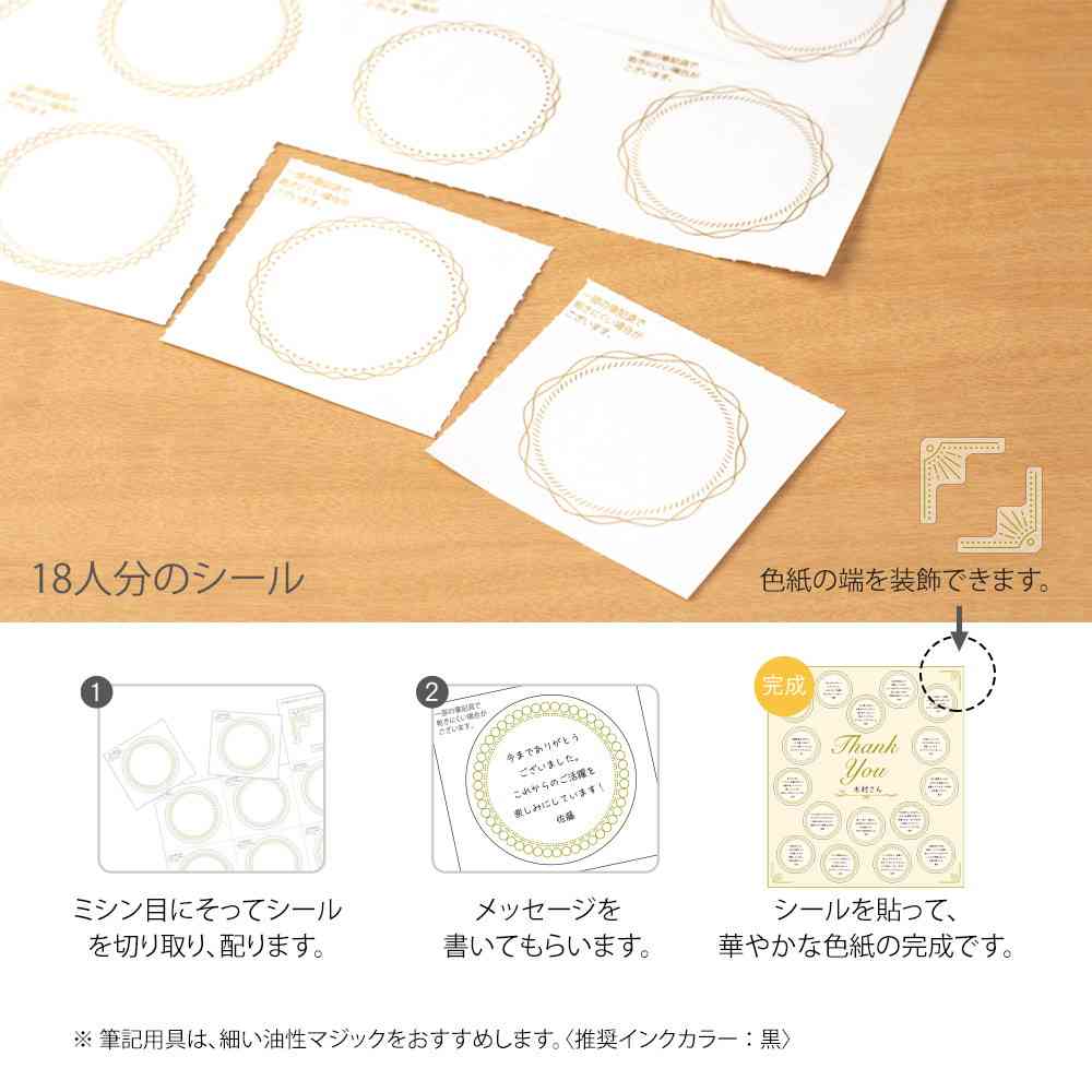 色紙を華やかに飾る金箔の半透明シールです。 「カラー色紙 シール付 半透明 タイトル」の追加用シールですが、ベーシックなデザインなので、様々な色紙にお使いいただけます。