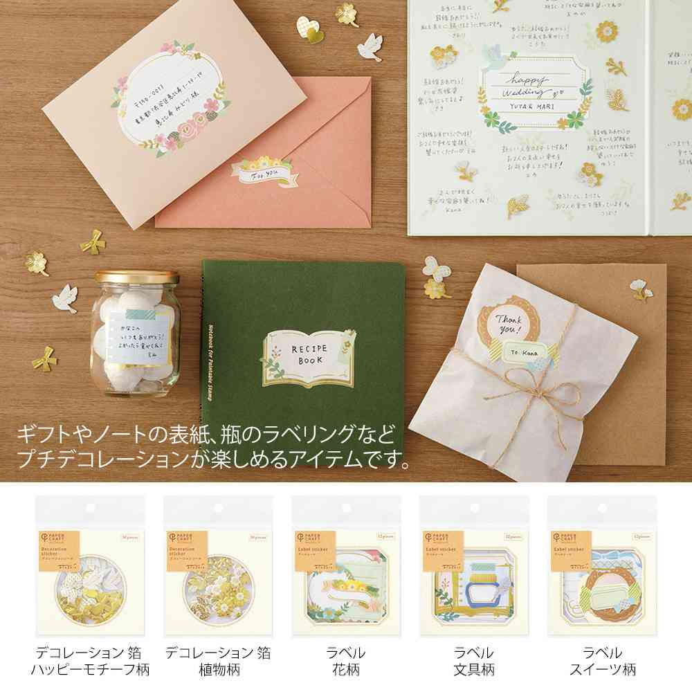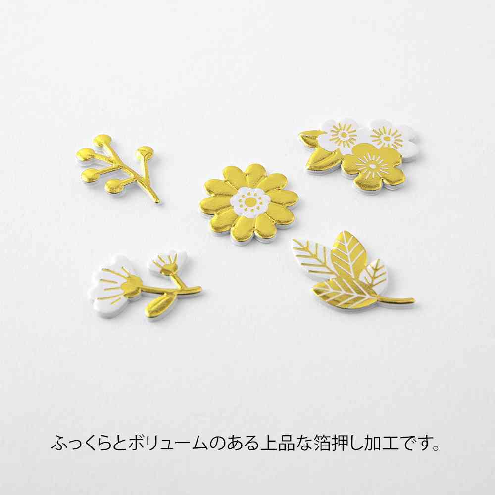 カード、ラッピングのデコレーションに使える立体感のあるシールです。 定番として人気高い植物モチーフのアソートパックで、シーンを選ばずに使いやすく、ギフトのワンポイントにはもちろん、ノートやアルバムの表紙のデコレーションにもおすすめです。 「ペーパークラフトミュージアム(PCM)」シリーズのタイトルシールやラベルシールと組み合わせても楽しくお使いいただけます。