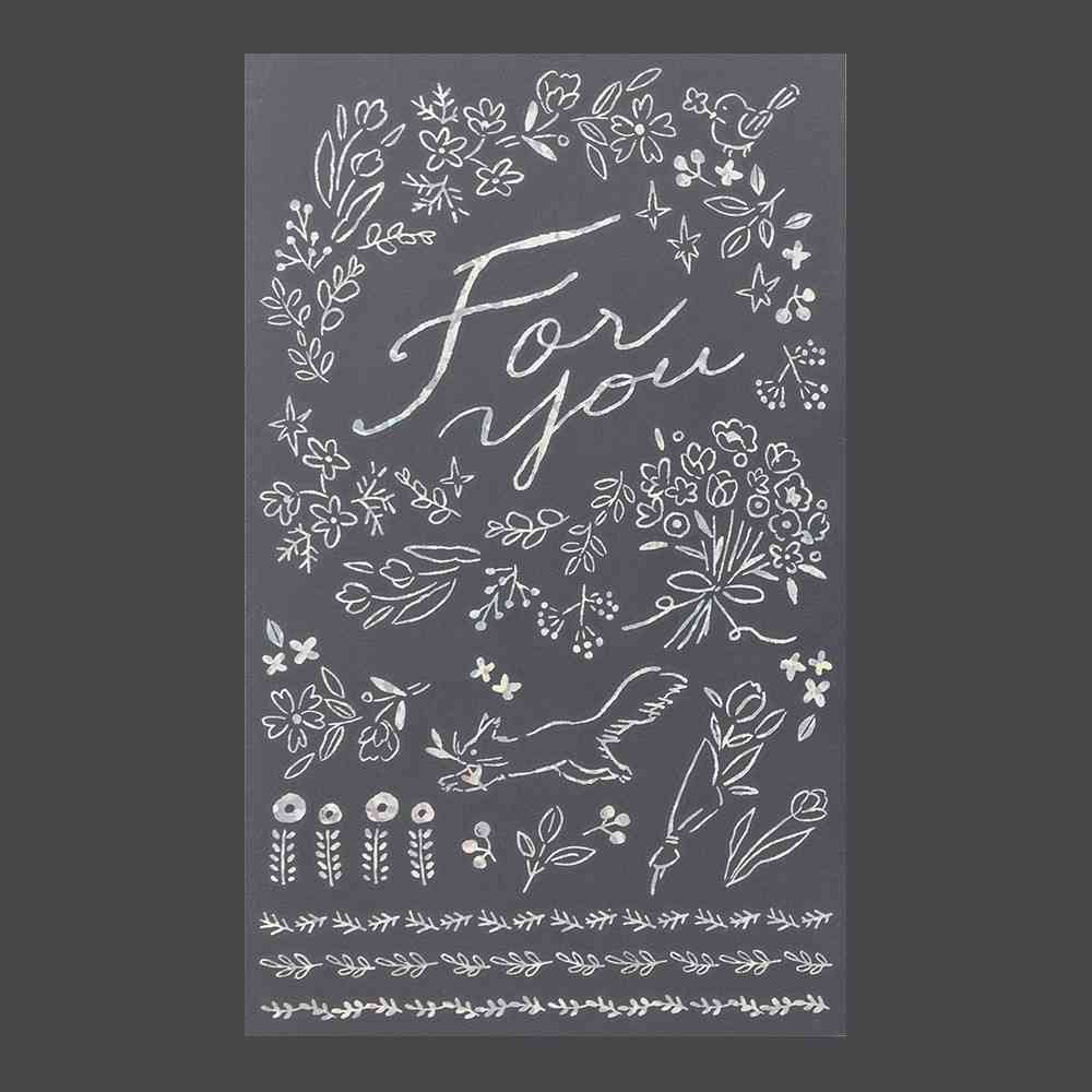 軽い力でこするだけで、ギフトカードや色紙にキラキラの箔押し加工ができる転写シールです。 段差が全く出ないので、まるで描いたかのように手書き風のメッセージやモチーフが紙と一体化します。 シートにはカットラインがないので、好きな部分だけを切り取ってご使用ください。 贈りものに添えるカードや手紙を彩るのにふさわしい、優しいタッチの動物や花柄のモチーフです。