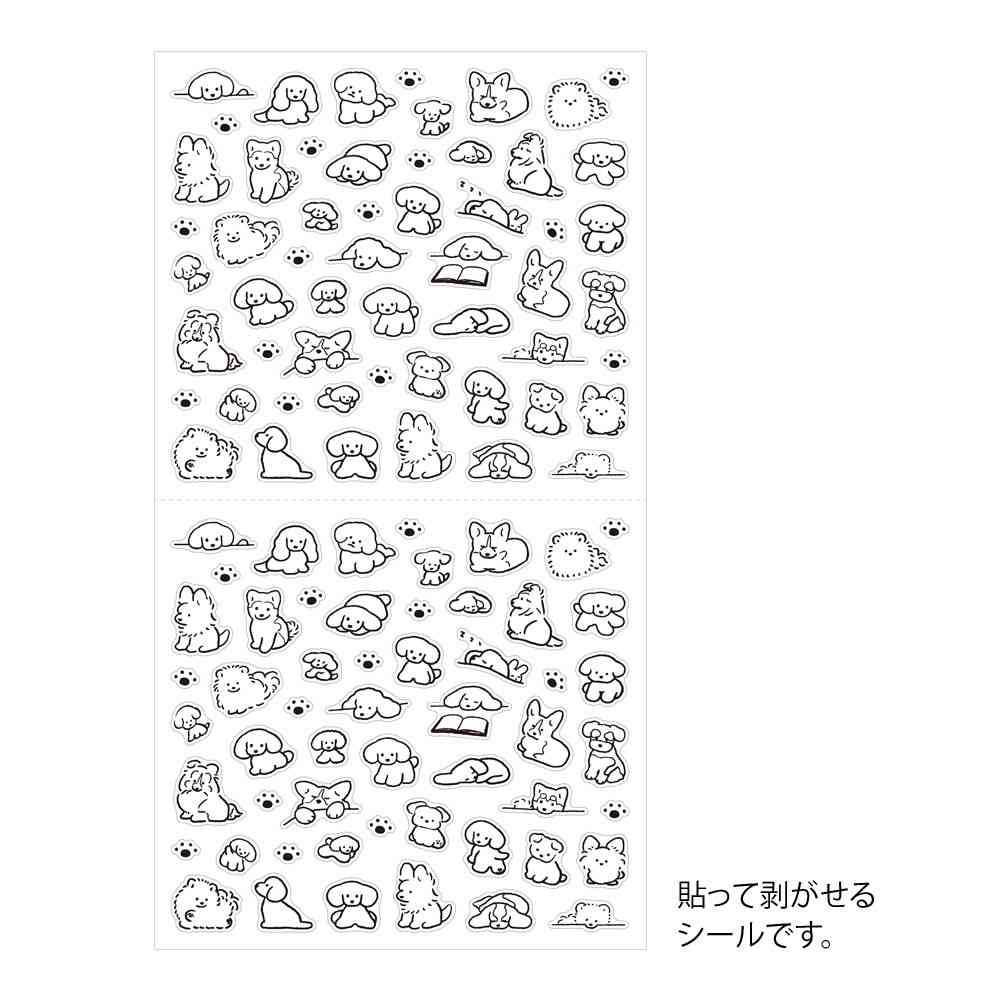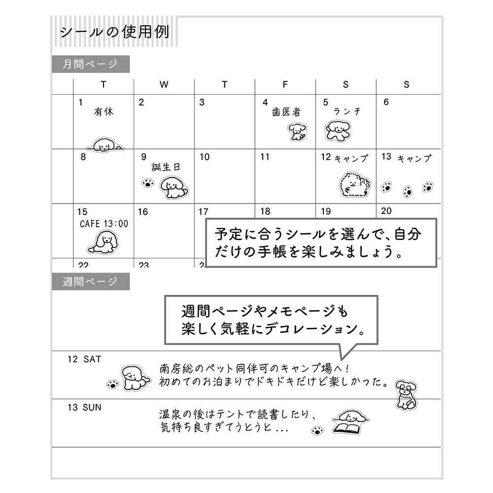 手帳やノートのデコレーションを楽しむための、PET素材のシールです。 手帳の日付や見出し部分を強調したり、罫線や余白に彩りを添えることで、自分だけの個性豊かな1冊にカスタマイズできます。 ミシン目入りで上下に2分割できるので、必要な分だけを携帯しましょう。 貼って剥がせるタイプなので、慎重に考える必要もなく、とても気軽にデコレーションが楽しめます。 手帳の月間ブロックページに使いやすい小さめサイズで、さまざまなイヌの表情や動きがかわいいモチーフを集めました。