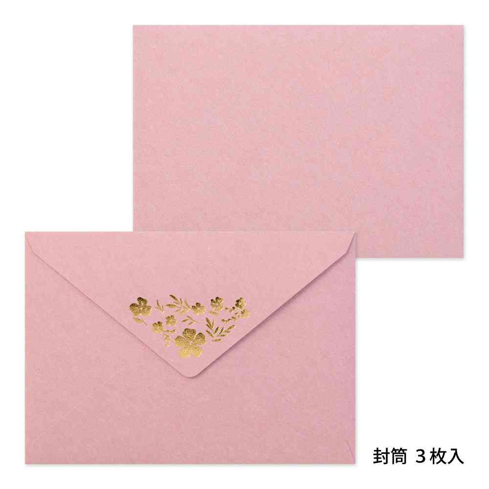 優しい草花で送る少し大人なレターセット。 封筒のフラップ部分にあしらわれた箔のデザインが、手紙が届いた時の高揚感を演出します。 小花が散りばめられた、華やかでかわいらしい女性向けのデザインです。 記念日や誕生日などちょっとしたお祝いごとのお手紙にぴったりです。