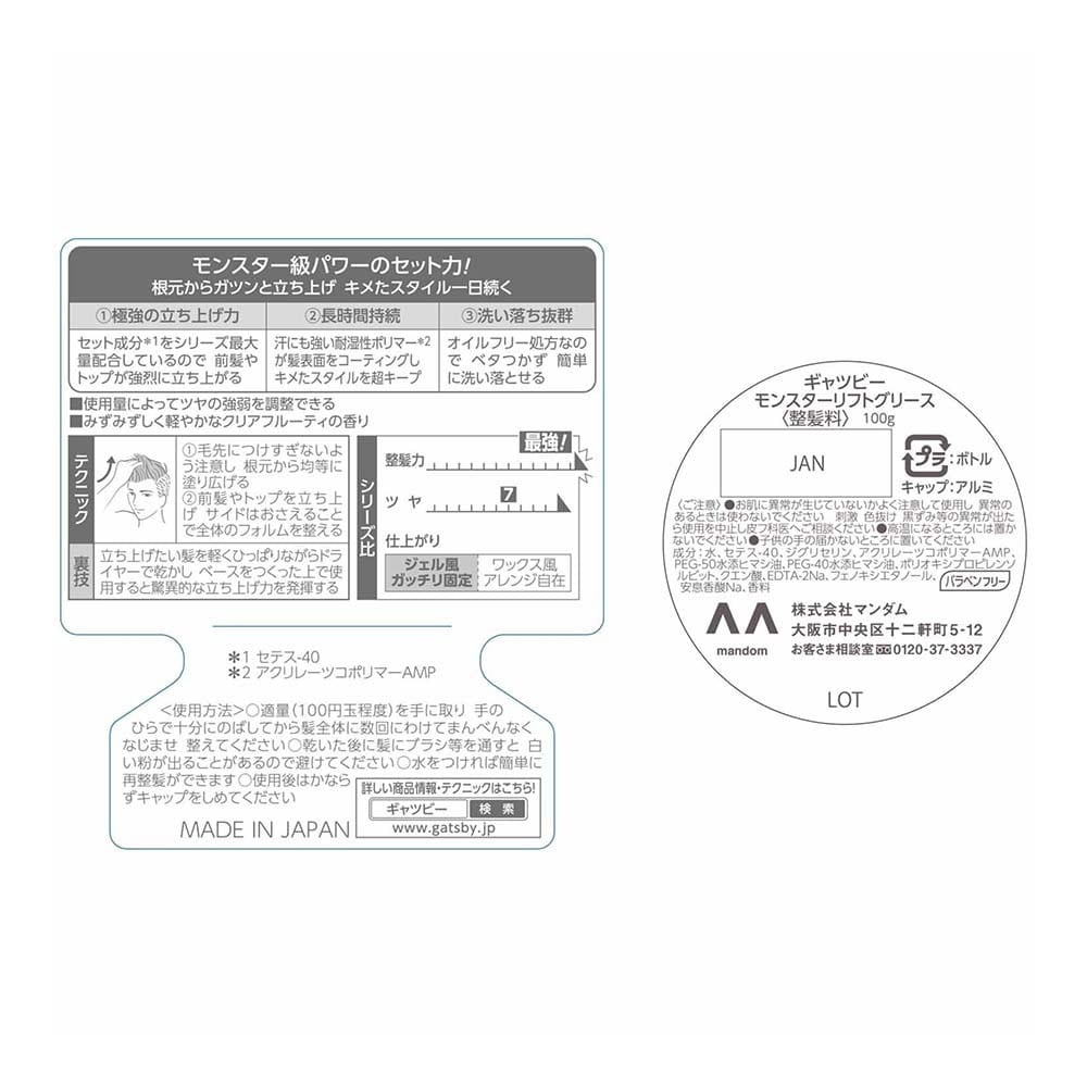 - > マンダム ギャツビー モンスターリフトグリース 100g