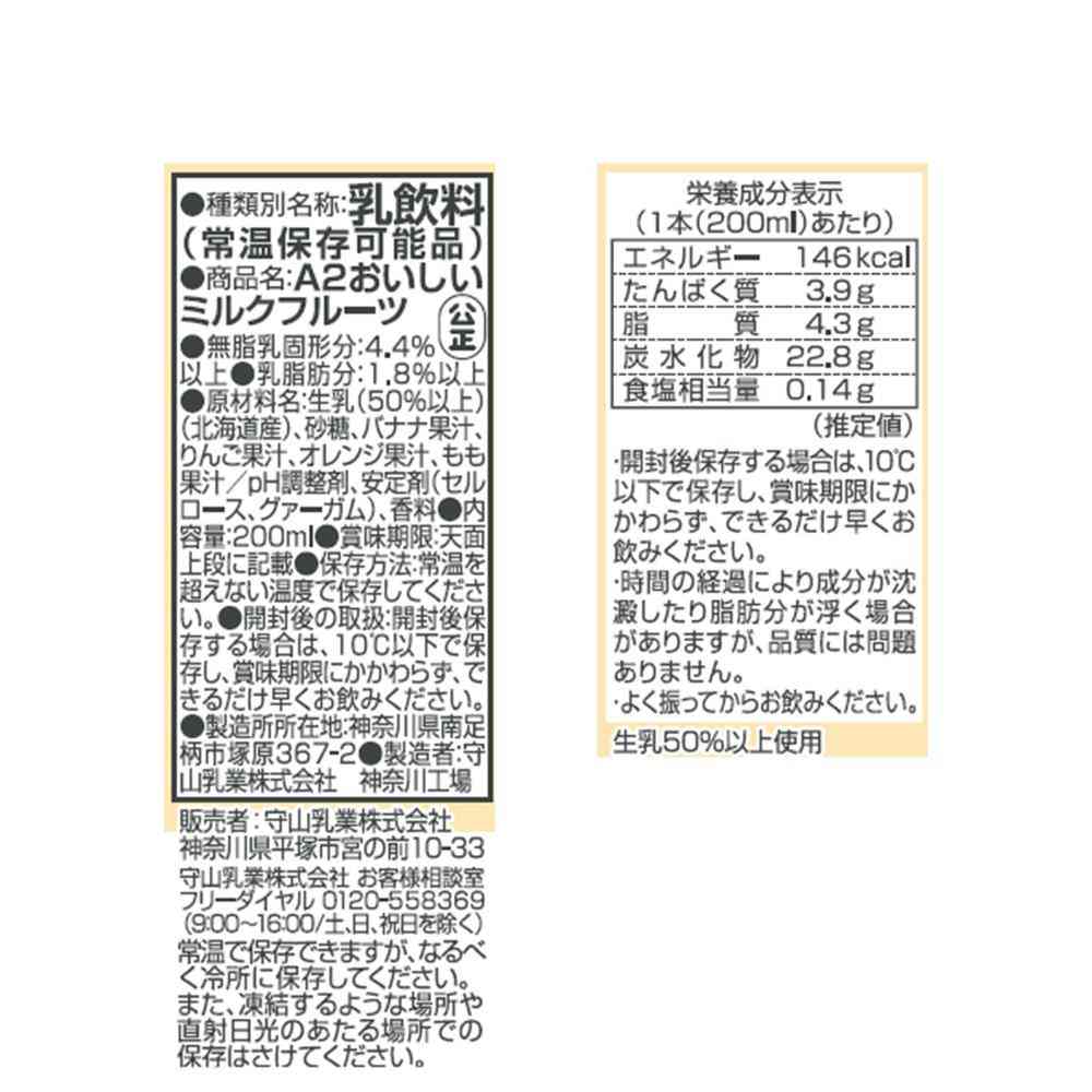 A2、A2牛乳、牛乳、フルーツ、ミルクフルーツ、常温