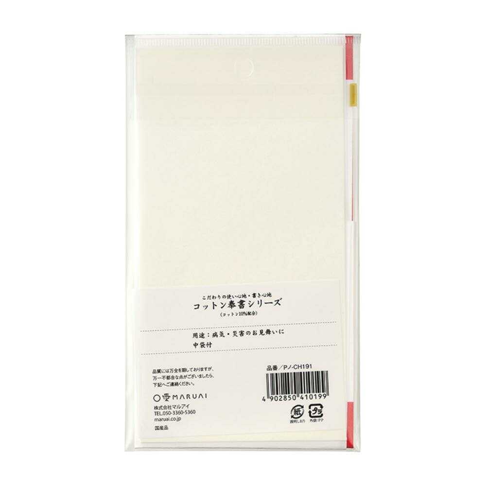 ●本体原紙の原料にコットンを配合した書き心地にこだわった奉書紙シリーズ(伊予和紙)。 ●「御見舞」の文字が墨色で印刷されたお見舞用の多当です。 ●中袋1枚付。