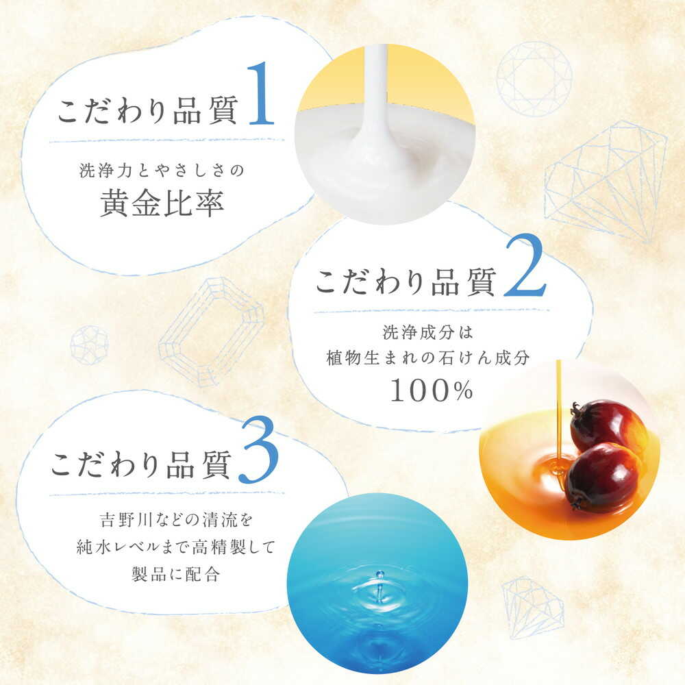 ●本品は飲み物ではございません。_x000D_ ●傷やはれもの、しっしん等異常のある部位には、お使いにならないでください。_x000D_ ●使用中、または使用後日光にあたって、赤味・はれ・かゆみ・刺激等の異常が現れた場合は、使用を中止し、皮膚科専門医等にご相談されることをおすすめします。そのまま使用を続けますと悪化することがあります。_x000D_ ●目に入らないように注意してください。目に入った時は、すぐに水で洗い流してください。_x000D_ ●乳幼児の手の届かないところに保管してください。_x000D_ ●低温で保管した場合、石けんの一部が固化し、泡が出にくくなったり、液が白く濁ることがあります。その場合、容器ごとぬるま湯で温めて液を透明にしてからご使用ください。_x000D_ ●香料、着色料、防腐剤を含まない無添加石けんですので、石けん本来の特有な香りがしたり、また気候その他で変色している場合がありますが、ご使用には問題ありません。