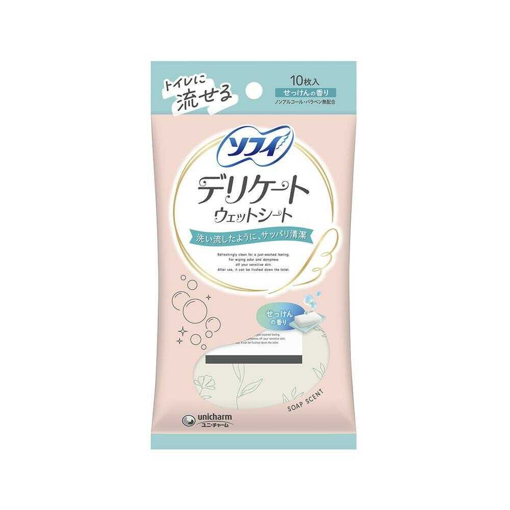 デリケートウェットは、髪の毛の1/1000の超極細繊維配合で、デリケートな肌のニオイまで洗い流したようにサッパリ清潔に保てます。 ポーチにすっぽり入るコンパクトサイズです。 使い終わった後も、トイレにそのまま流せて後処理も簡単です。