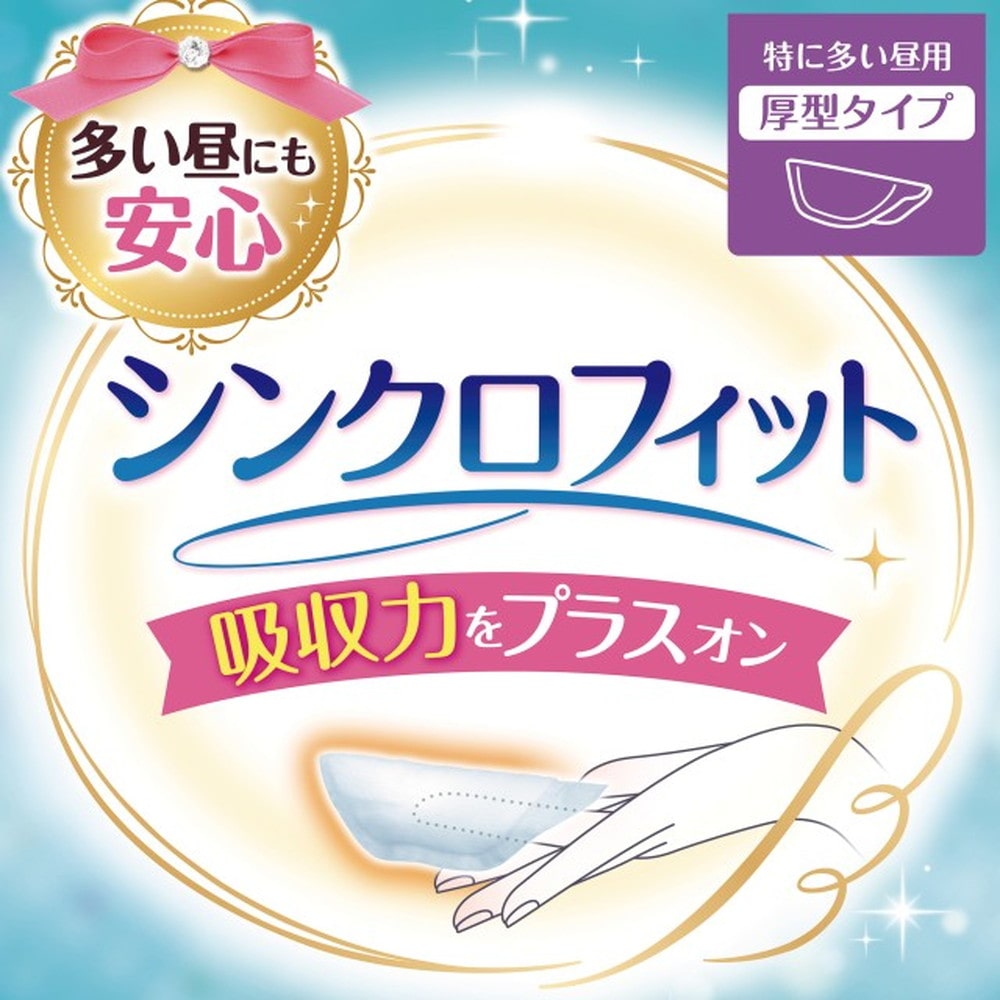 ナプキンでもタンポンでもない、第3の生理用品シンクロフィット。 ナプキンとカラダの間のあのスキマにはさんで、いつものナプキンに吸収力をプラスオン。 だから、自分のペースで替えられない時もモレ安心。 しかもトイレに流せる。