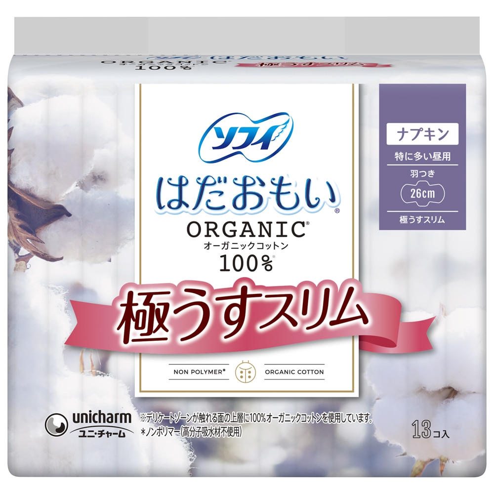●ソフィから、最も素材にこだわったオーガニックコットン100%シリーズのナプキンです。