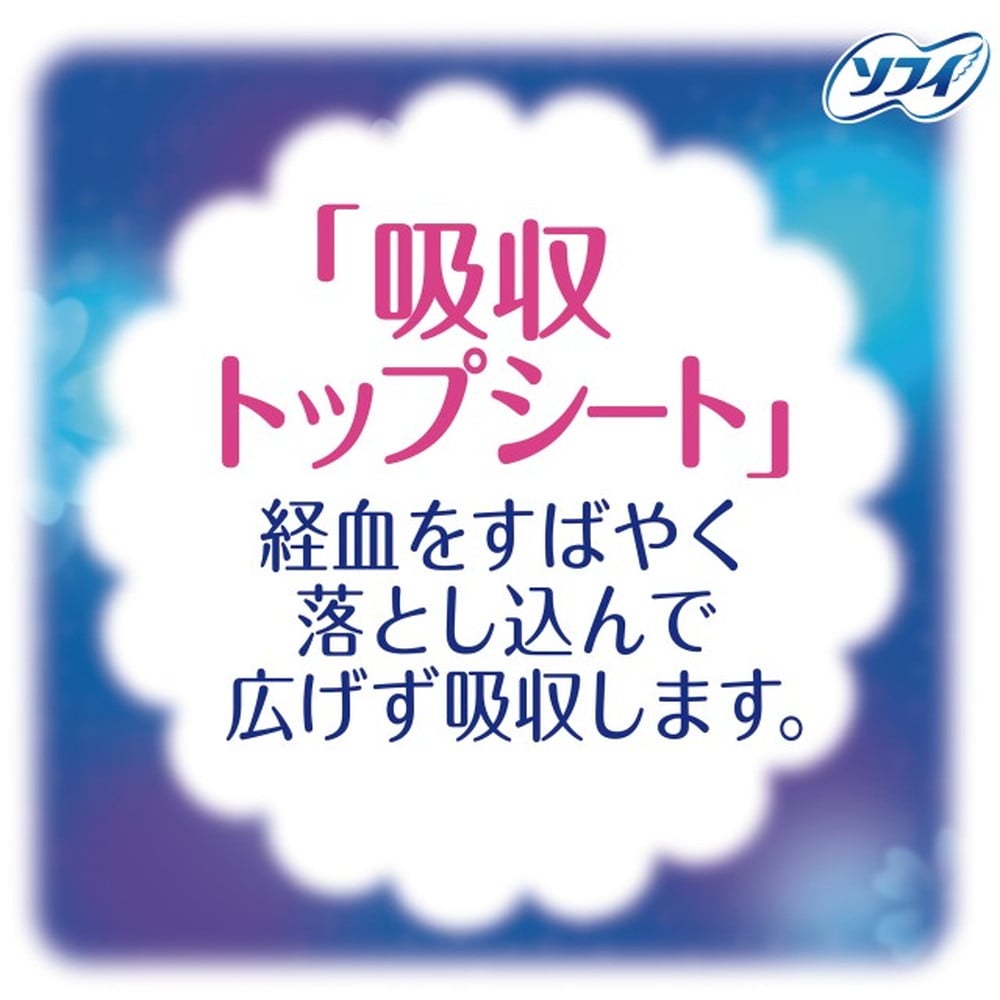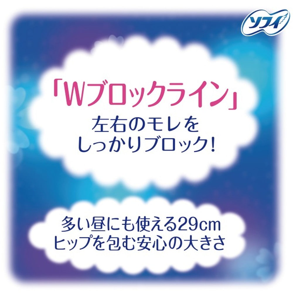 ●寝返りしてもヨレずにモレ安心。 ●「まん中フィットゾーン」肌にやさしくフィット、スキマをつくらないから、モレ不安感がありません。 ●「吸収トップシート」経血をすばやく落とし込んで広げず吸収します。 ●「Wブロックライン」左右のモレをしっかりブロック!