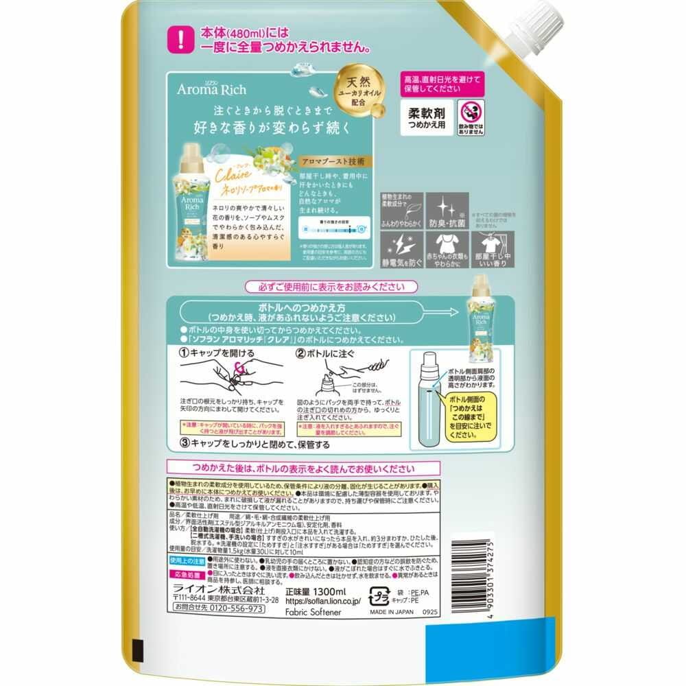 ![ライオン ソフラン アロマリッチ クレア 詰め替え ウルトラジャンボ 1300ml [6個セット]](/img/0170/goods/D2/4903301374275_7.jpg)
