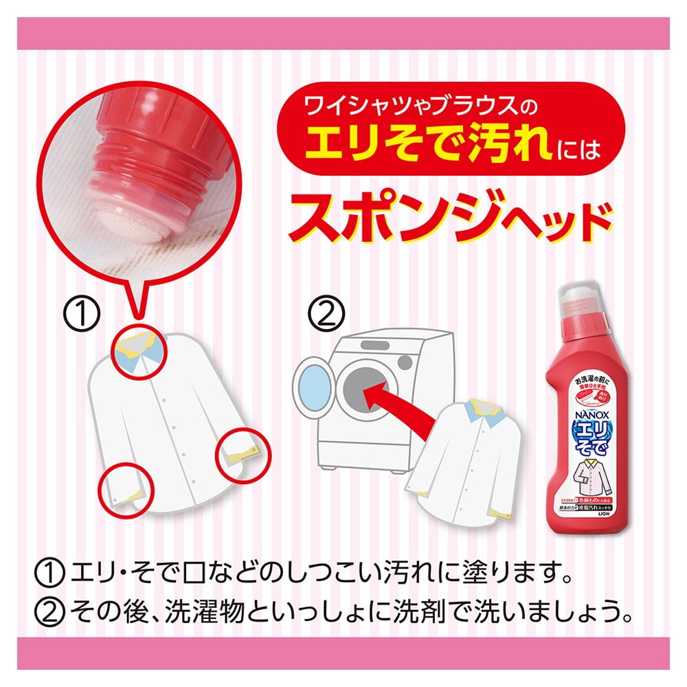 洗濯機で洗う前にエリやそで口に直接塗れば、あとは洗濯機まかせでしつこい汚れをすっきり落とす、便利で効果的な衣類の部分洗い剤。 体から出る皮脂やタンパク質が混ざり合った複合的な汚れである“エリそで汚れ""""""""""""""""""""""""""""""""""""""""""""""""""""""""""""""""""""""""""""""""""""""""""""""""""""""""""""""""""""""""""""""""""""""""""""""""""""""""""""""""""""""""""""""""""""""""""""""""""""""""""""""""""""""""""""""""""""""""""""""""""""""""""""""""""""""""""""""""""""""""""""""""""""""""""""""""""""""""""""""""""""""""""""""""""""""""""""""""""""""""""""""""""""""""""""""""""""""""""""""""""""""""""""""""""""""""""""""""""""""""""""""""""""""""""""""""""""""""""""""""""""""""""""""""""""""""""""""""を「酵素」と「ノニオン界面活性剤」の相乗効果でパワフルに分解します。 エリやそで口などの細長く広い範囲の汚れにも、液をのばしながらムラなく塗布できる、スポンジ付き容器の詰め替え用(詰め替え230gに対して約2.8倍の大容量)。 無けい光なので、色柄物や淡色の衣料にも安心。