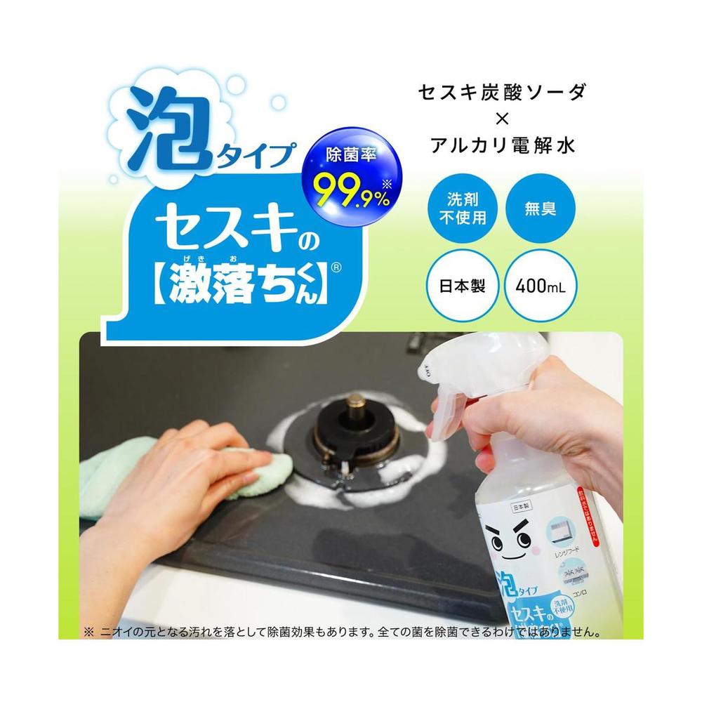 水を独自の方法で電気分解したアルカリ電解水に、セスキ炭酸ソーダを配合した無色無臭の万能クリーナーです。 ニオイの元となる汚れや雑菌を取り除くので、除菌・消臭効果もあります。 汚れに貼りつく泡タイプなので、レンジフードや壁等の傾斜面にもご使用になれます。
