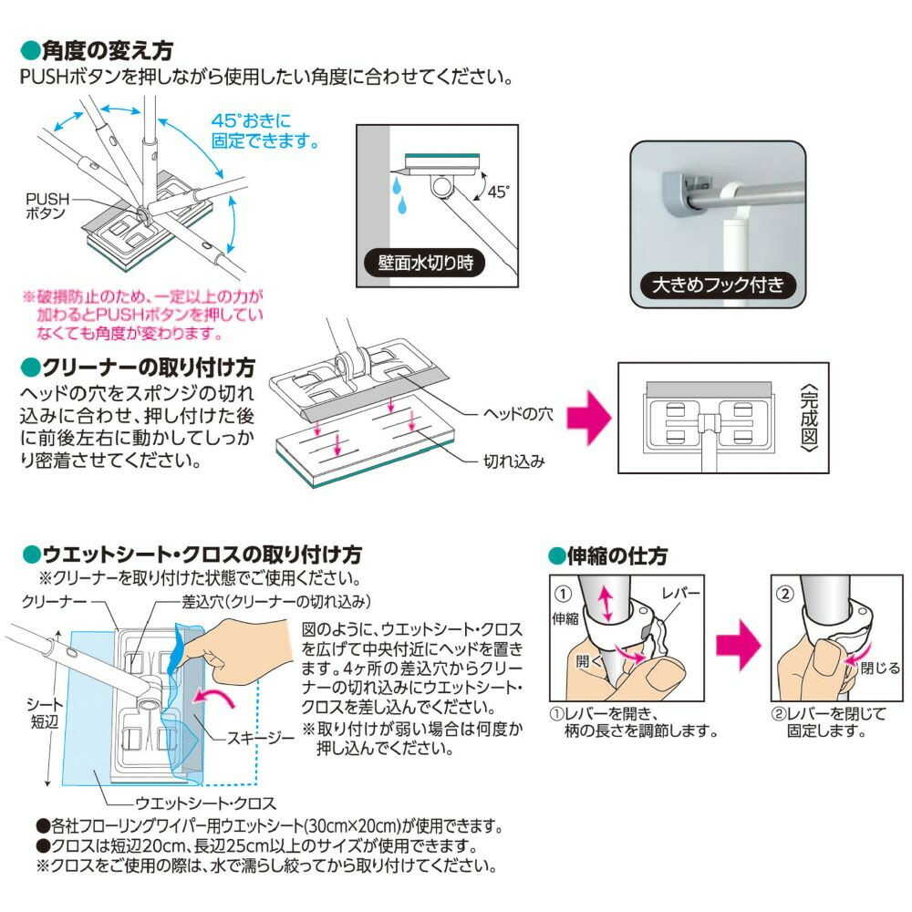柄:ポリプロピレン、ABS樹脂、アルミニウム合金ヘッド:ポリプロピレン、熱可塑性エラストマー、ABS樹脂、ポリアセタールクリーナー:ナイロン、ポリエステル、ポリエチレンフォーム