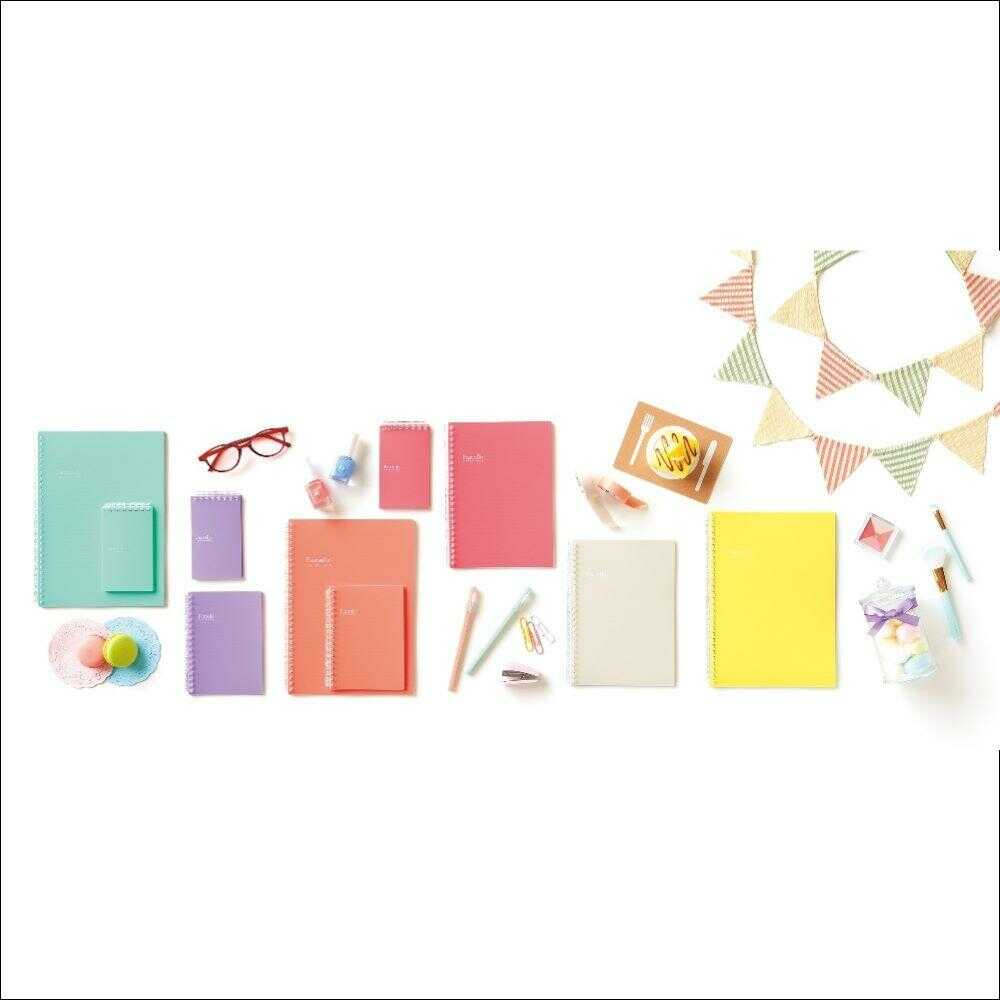 表紙:ポリプロピレン(生地厚0.5mm)、とじ具:ポリカーボネート、リーフ:上質紙