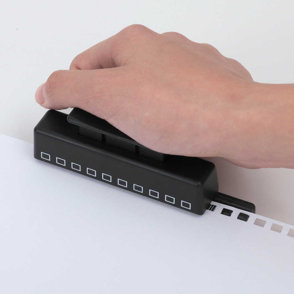 用紙に穴をあけられるツイストノート用パンチ。 当社ツイストノートのとじ具に対応したパンチです。 このパンチで用紙に穴をあける事により、ツイストノートに綴じることが出来ます。 パンチは10穴式ですが、本体のガイドを利用し、用紙を移動することにより、10穴以上の穴をあけることが出来ます。