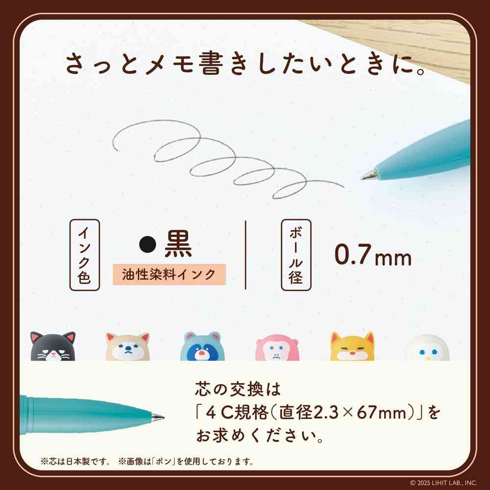 ミニボールペン、コンパクト、携帯用、筆記具、かわいい、動物デザイン、ミニサイズ、ポン