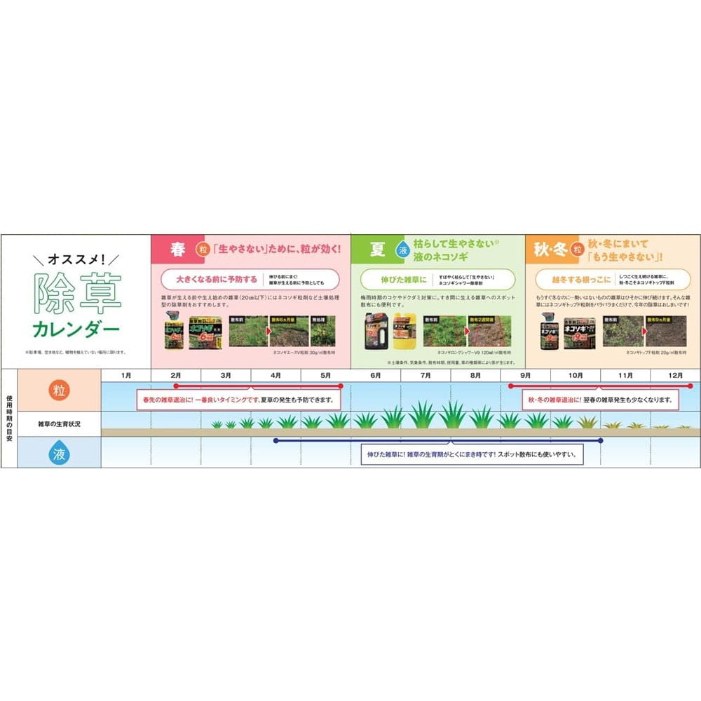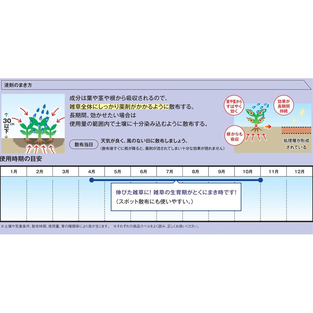 商品説明雑草を根まで枯らして長期間生やさないシャワー除草剤 【特徴】 薄めずにこのまま撒く,液体シャワー除草剤。 雑草の葉や土から効きます。 長期間効果が持続します。 スギナヤコケにも効果。 ごみの減量化に着目したエコパウチタイプ 成分:グリホサートIPA 0.9% テブチウロン 0.15% ヘキサジノン 0.15%