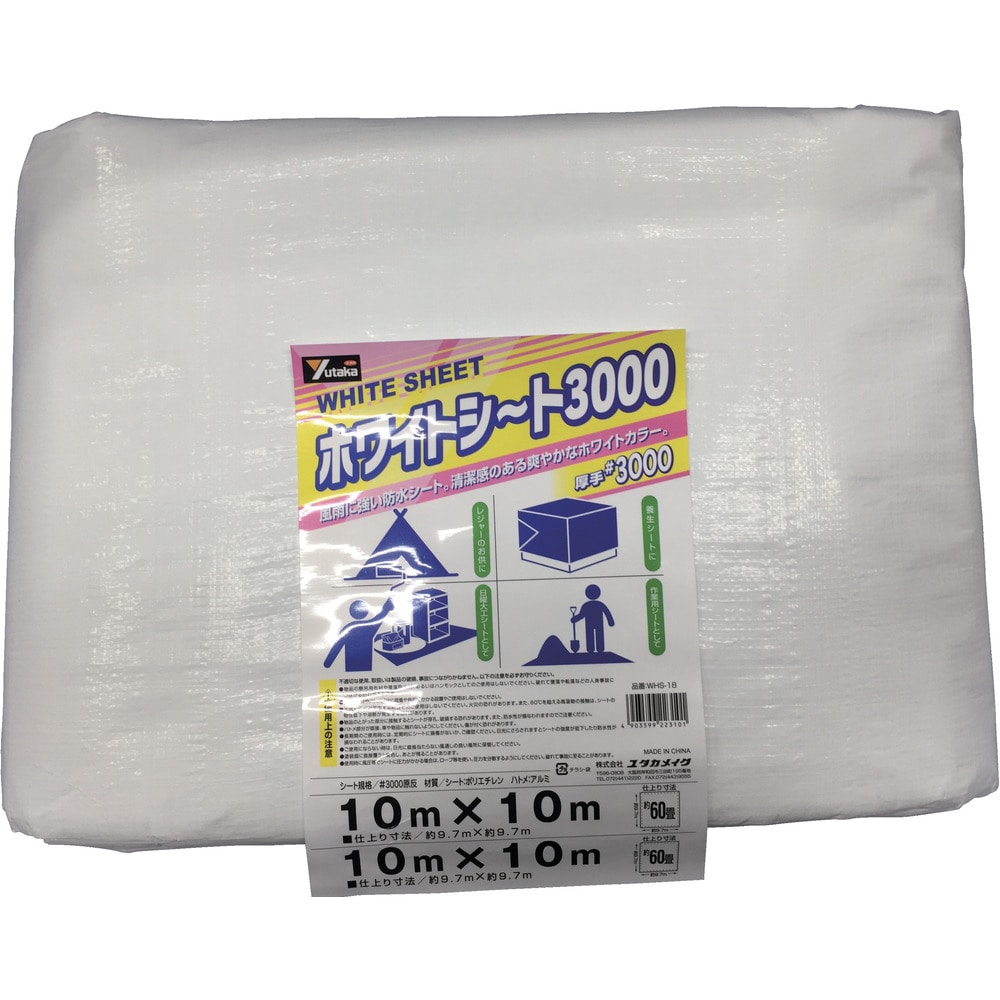●清潔感のあるホワイトで景観を損なわない厚手の作業用シートです。●色:ホワイト●幅(m):9.7●長さ(m):9.7●厚さ(mm):0.22●ハトメ数(個):44●ハトメピッチ(cm):90●番手(#):3000●耐久期間:約6ヵ月~1年●引張強度:縦520N/5cm、横440N/5cm 質量15.5kg