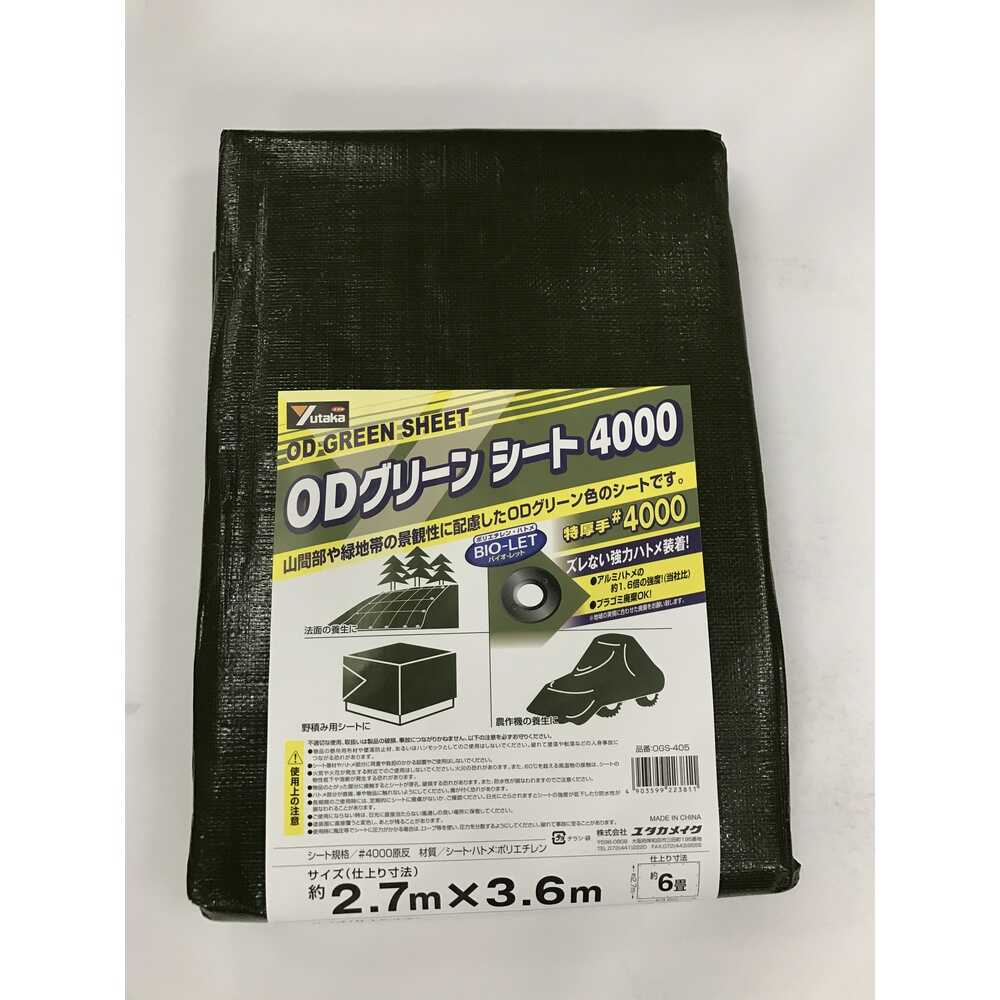 ●紫外線耐候剤配合で防水性が高いです。●超厚手#4000タイプです。●色:ODグリーン●幅(m):2.7●長さ(m):3.6●厚さ(mm):0.31●ハトメ数(個):14●ハトメピッチ(cm):90●番手(#):4000●耐久期間:約2~3年●引張強度:縦794N/5cm、横579N/5cm●厚さ:0.31mm 質量2kg