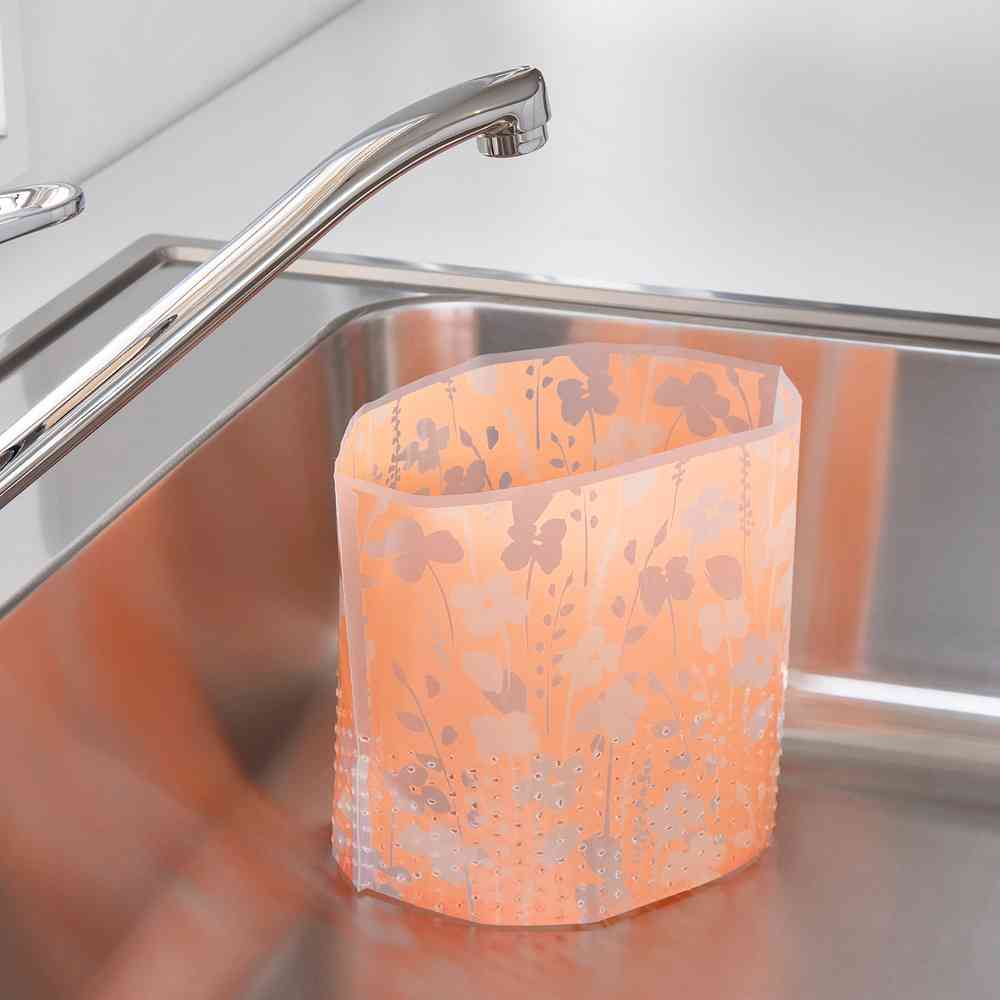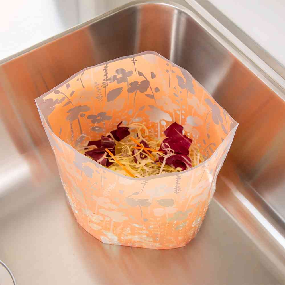 三角コーナーがいらない自立する水切りゴミ袋。 場所を選ばずにシンクが広く使えます。 水切りゴミ袋以外の用途に使用しないでください。