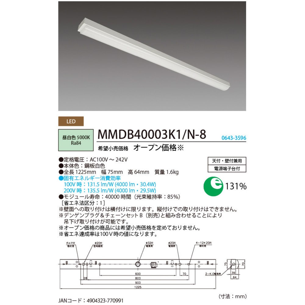 ●FLR40形ランプ2灯用器具相当の明るさ明るい昼白色です。●天井ボルトの出シロ長は、最長35mmまで切断することなく施工可能です。●ライトユニット+本体 同梱包品で、荷運びも楽で環境に優しい商品です。●明るさ(lm):4000●光源色:昼白色●幅(mm):75●長さ(mm):1225●高さ(mm):64●電源(V):100~242●消費電力(W):27●定格寿命(時間):40000●タイプ:トラフ形●電圧(V):AC100~242●消費効率(lm/W):148.1●単台トラフ形本体及びライトユニット同梱タイプ 質量1.6kg