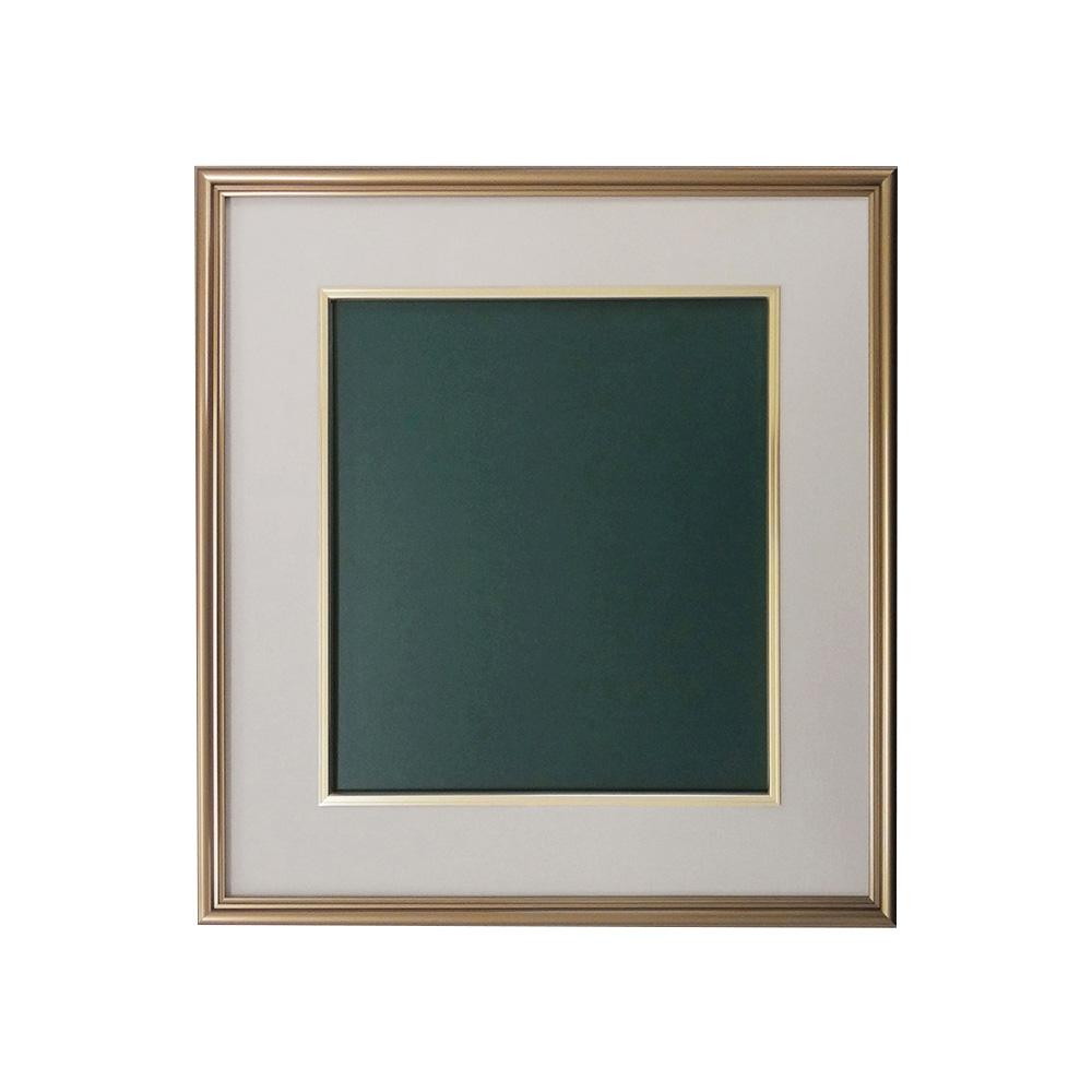 アルミ製の色紙額 布貼マットの内側に一般的な色紙の大きさ、八寸九寸(242×273)の色紙が入ります。 ※お使いのPCモニターの設定によって、実際の商品と色味が若干異なる場合がございます。ご了承ください。