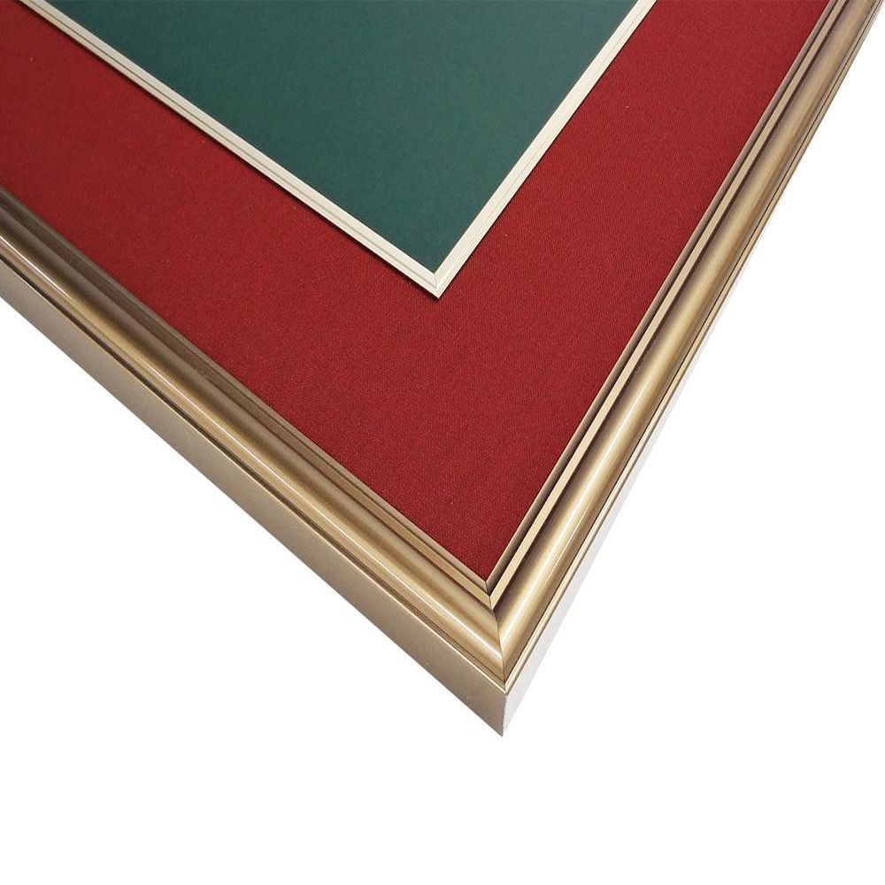 アルミ製の色紙額 布貼マットの内側に一般的な色紙の大きさ、八寸九寸(242×273)の色紙が入ります。 ※お使いのPCモニターの設定によって、実際の商品と色味が若干異なる場合がございます。ご了承ください。