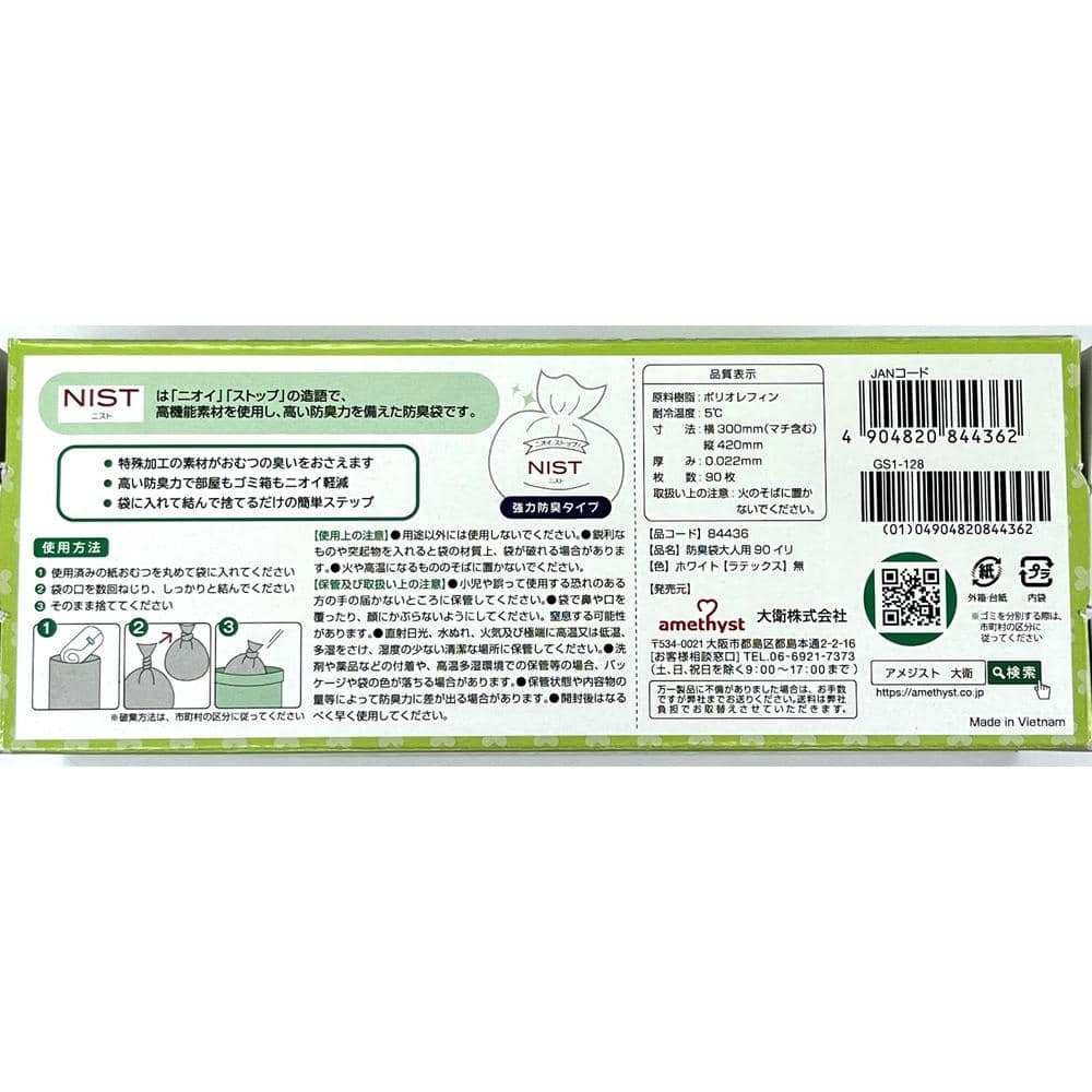 防臭、防臭力、防臭袋、臭い、ニオイ、におい、おむつ、オムツ、ニスト、NIST、大衛、アメジスト、臭わない、介護、消臭
