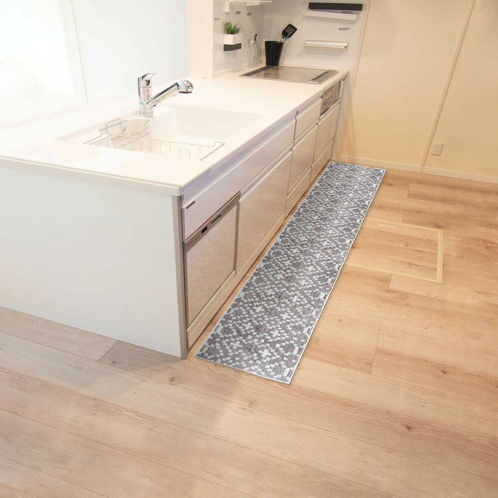 ミューカキッチンマット45×252、長尺キッチンラグ、滑り止めマット、おしゃれキッチン用品、ソフトクッションマット